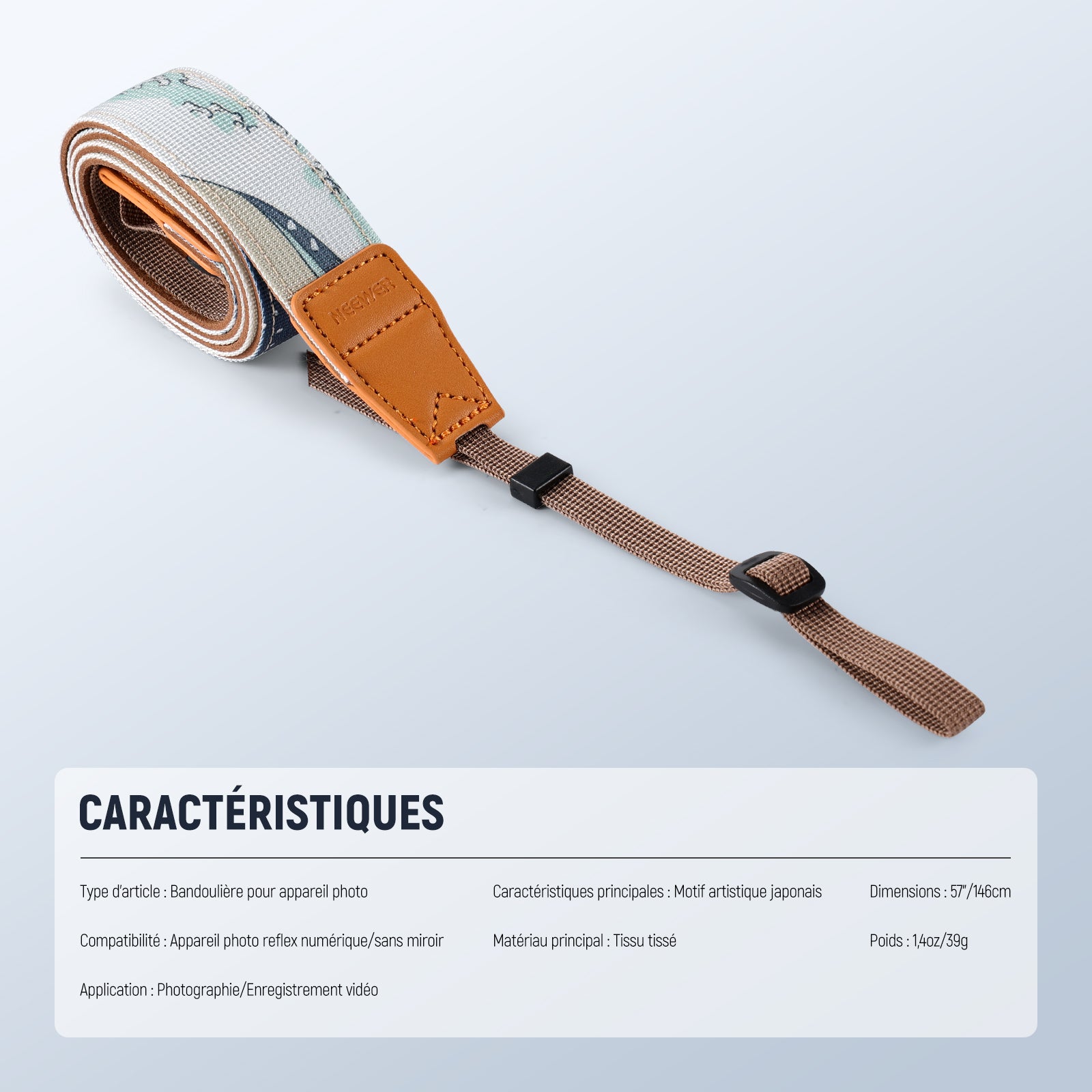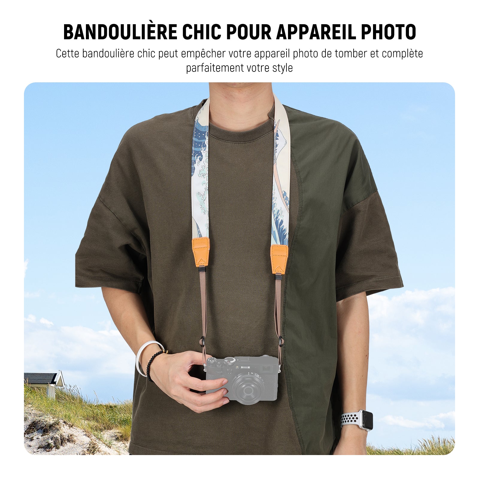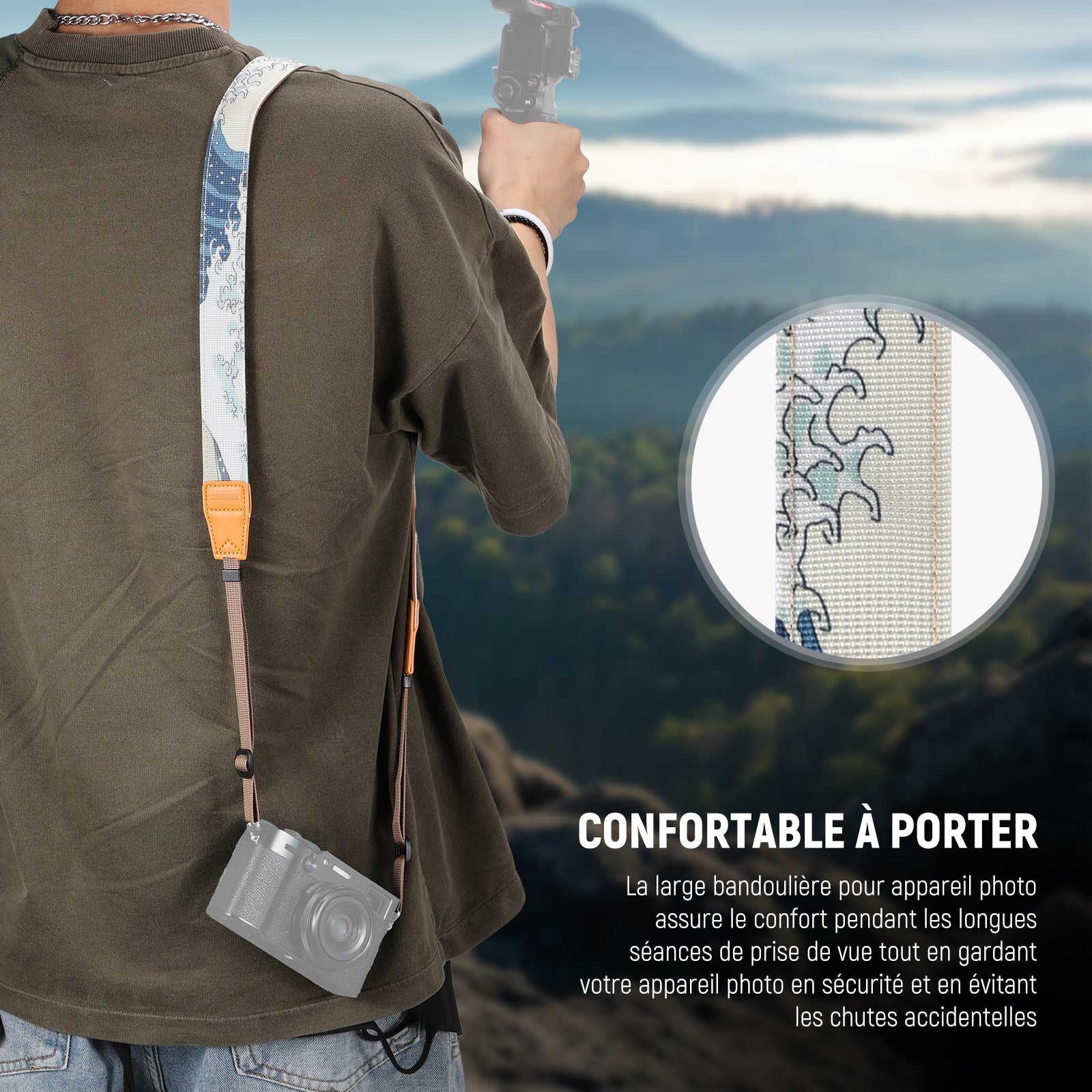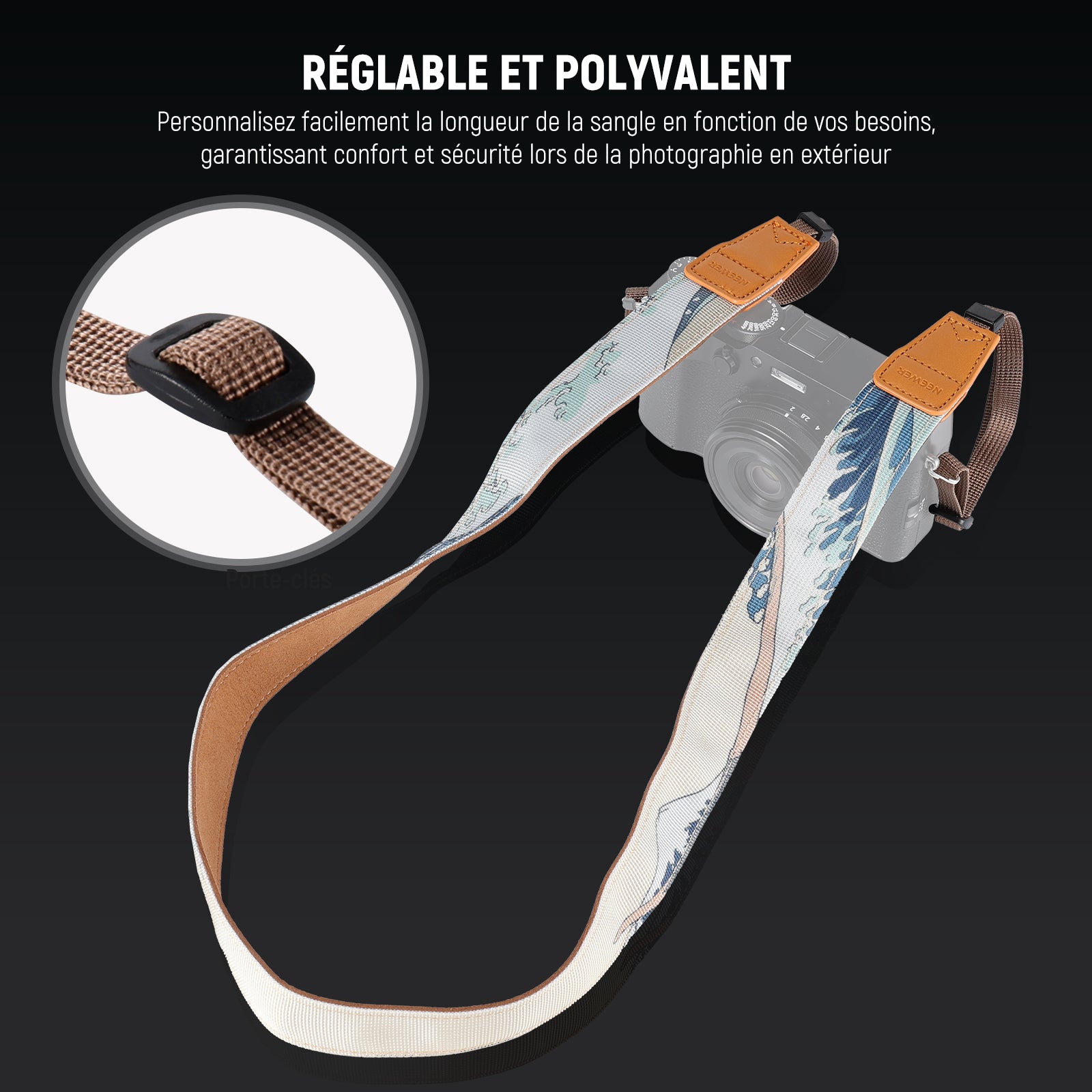- 【Design japonais emblématique】 Orné du légendaire "La grande vague de Kanagawa" de Hokusai, cette sangle ajoute une touche d'élégance à votre appareil photo