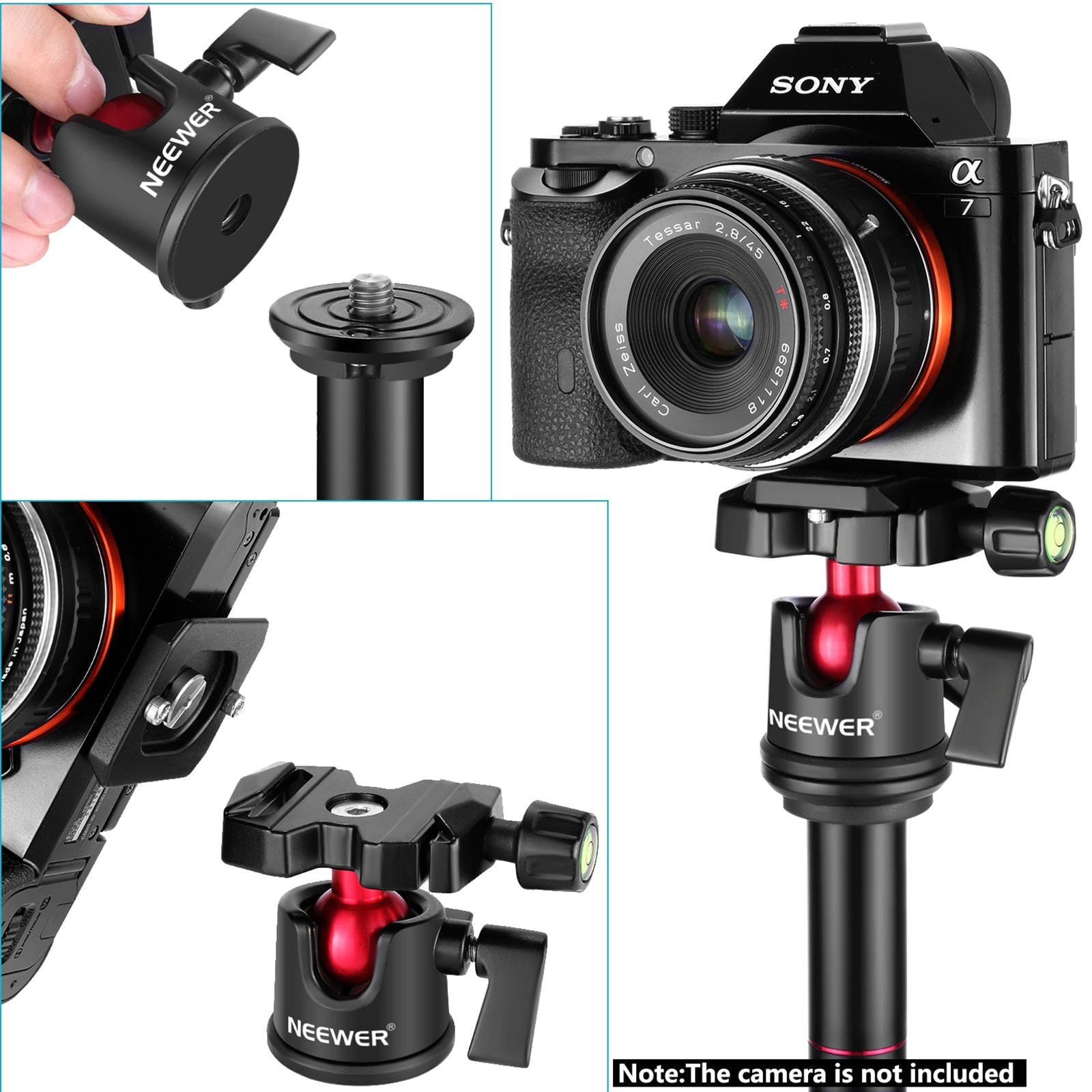 • La base panoramique à 360 degrés avec 2 verrous tournants peut facilement régler votre appareil photo à différents angles; Sans échelle; 1 niveau à bulle