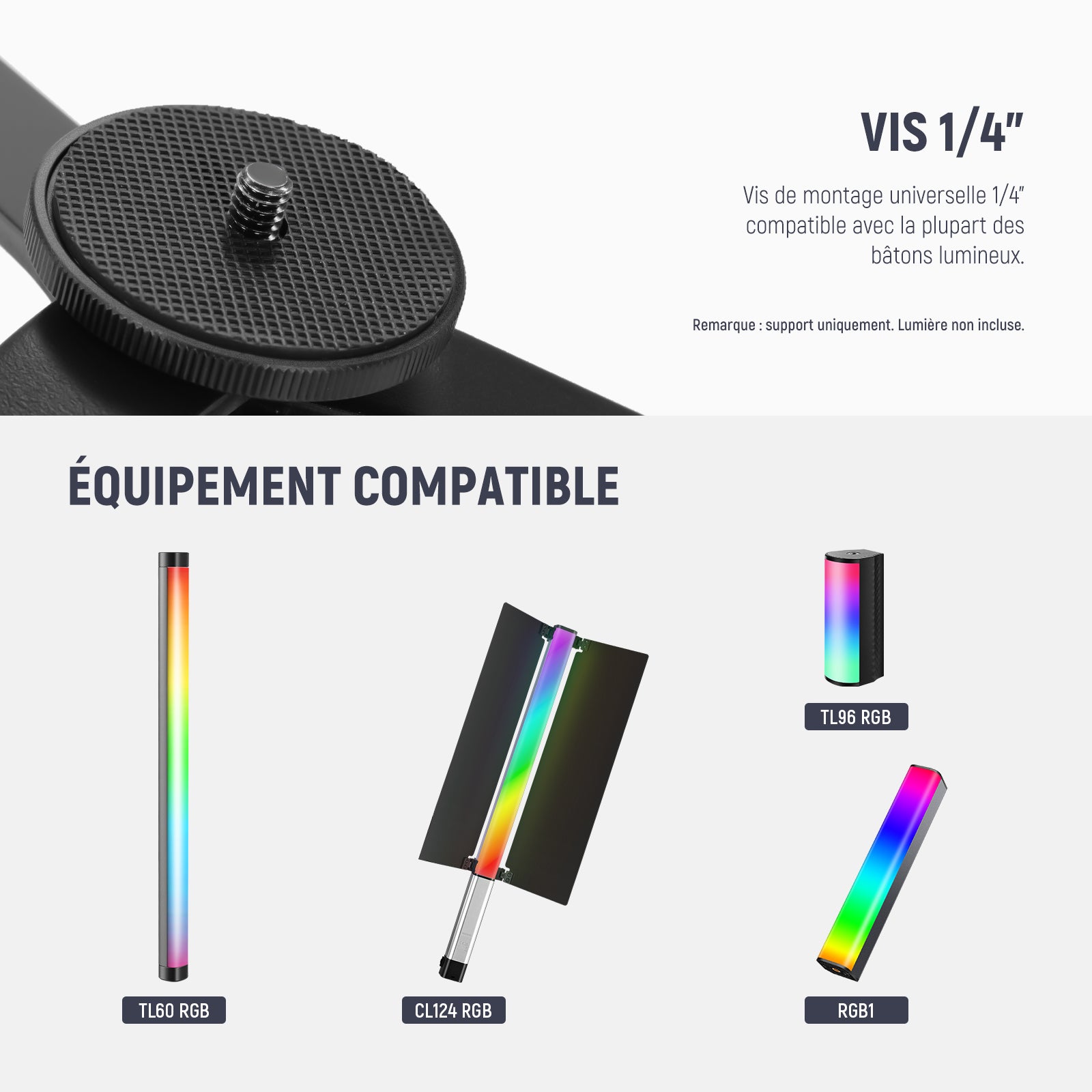 - 【Vis de montage universelle 1/4"】Avec une vis de montage universelle 1/4",ce trépied de bureau est adapté pour le tube lumineux NEEWER TL60,le bâton lumineux RGB1,la baguette lumineuse CL124,le petit bâton lumineux TL96 et d'autres mini lumières LED avec un filetage de 1/4".Il peut fonctionner comme un support de cardan lorsqu'il est connecté à un stabilisateur de cardan, ou monte des supports de téléphone et des caméras de vlogging pour l'enregistrement vidéo