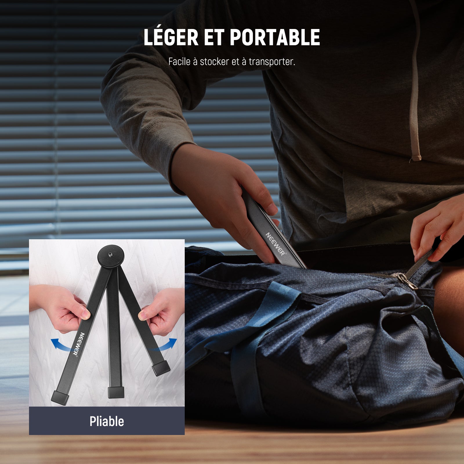 - 【Structure pliable et compacte】 Facile à utiliser, ce trépied peut être déployé et plié en tournant la plaque de montage supérieure. Une fois plié, il mesure 12"x2"x2"/300x50x50mm pour faciliter le stockage et le transport