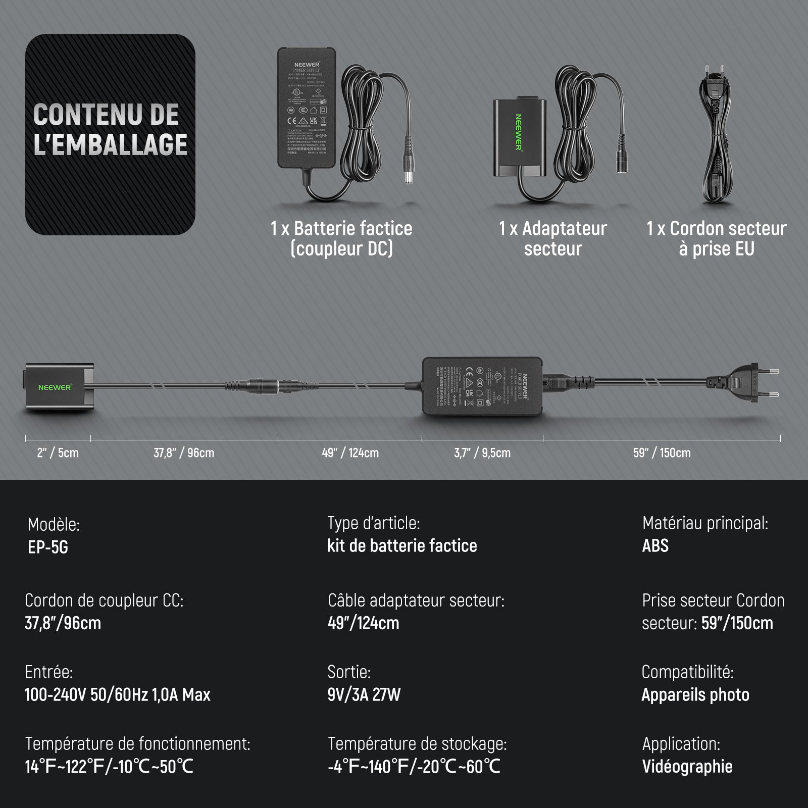 NEEWER EP-5G N-EL25 Kit Coupleur Batterie Factice Remplacement