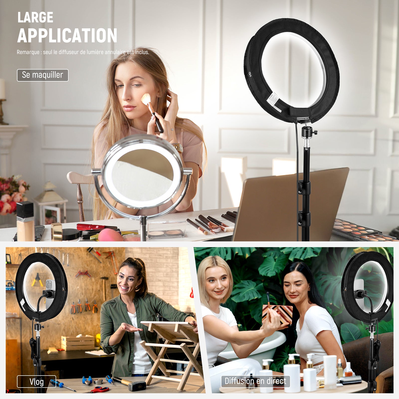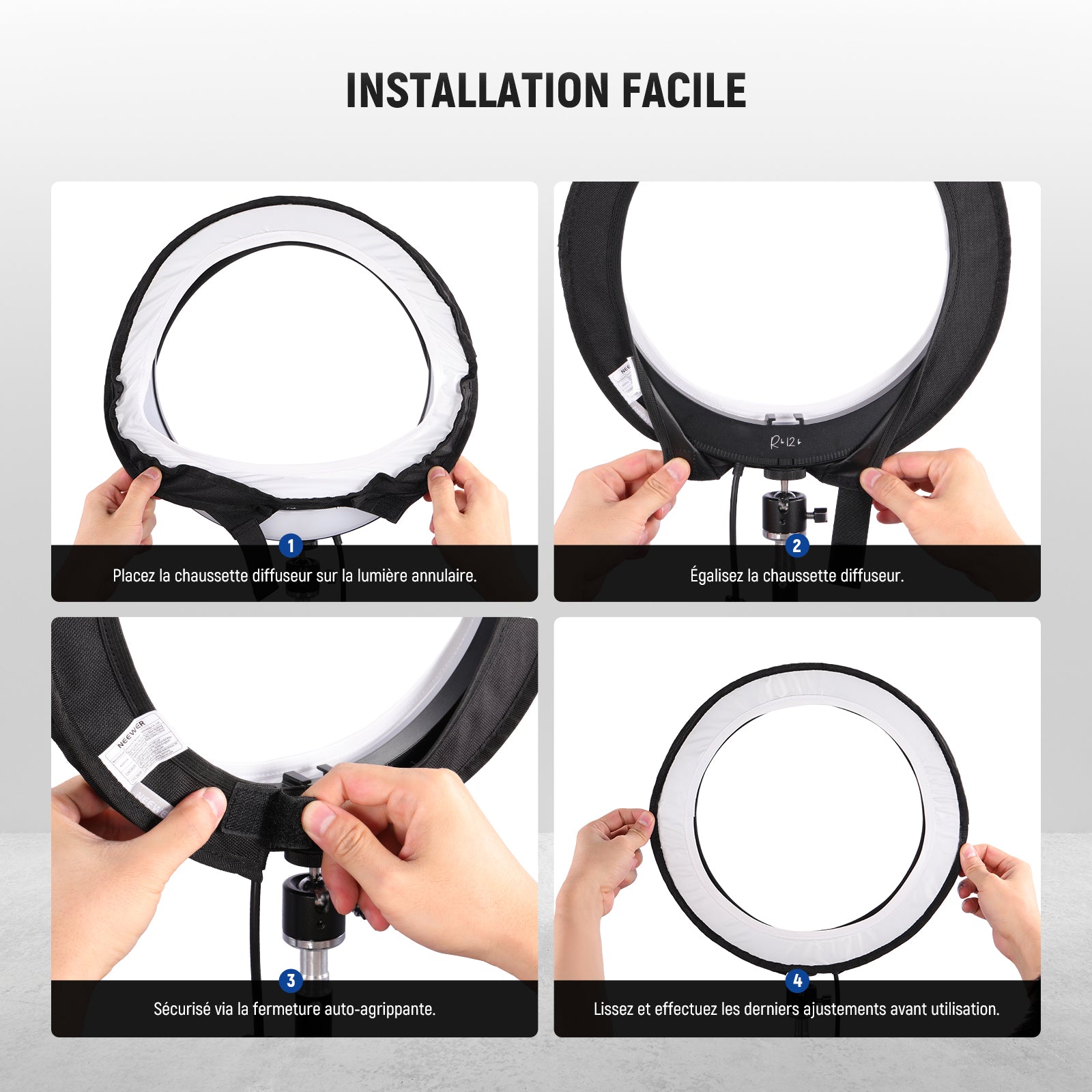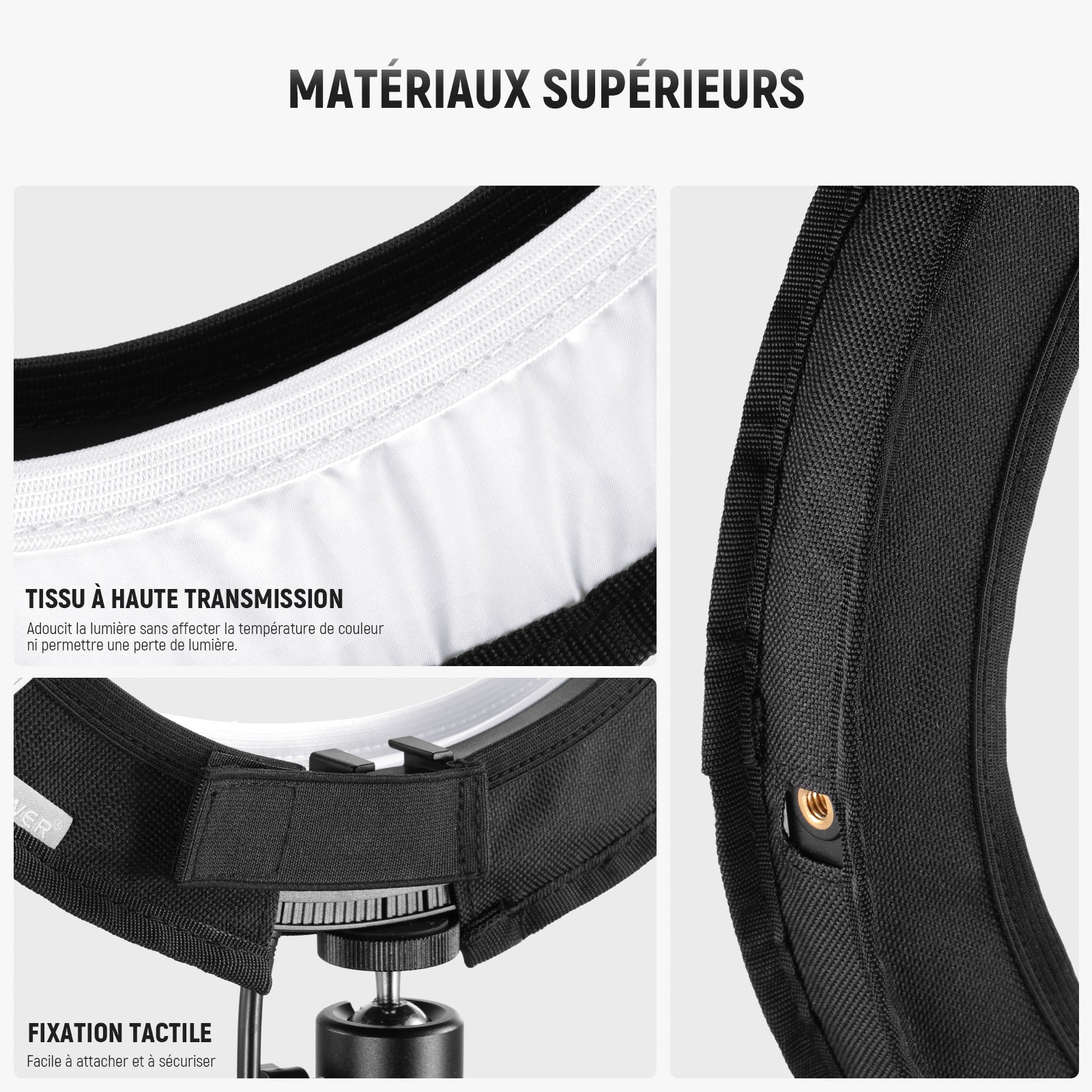 - 【Compatibilité exclusive】 Ce tissu diffuseur de lumière annulaire NS008 est compatible avec la lampe annulaire NEEWER RH12B RH12C 12" uniquement. Lampe annulaire NON incluse.