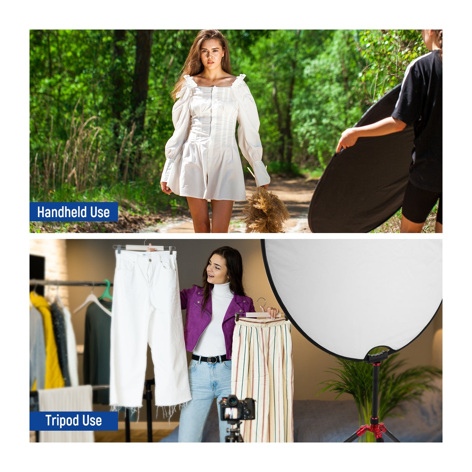 • 【Deux Poignées】Les deux poignées vous permettent de tenir le réflecteur à deux mains et de le positionner librement afin d'obtenir l'éclairage approprié pour vos prises de vue.