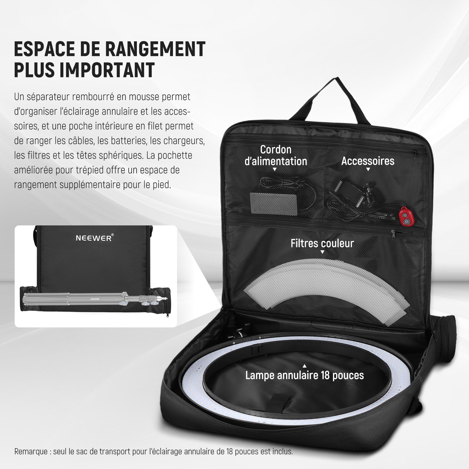 • 1 sac de transport pour anneau lumineux de 45,7 cm
