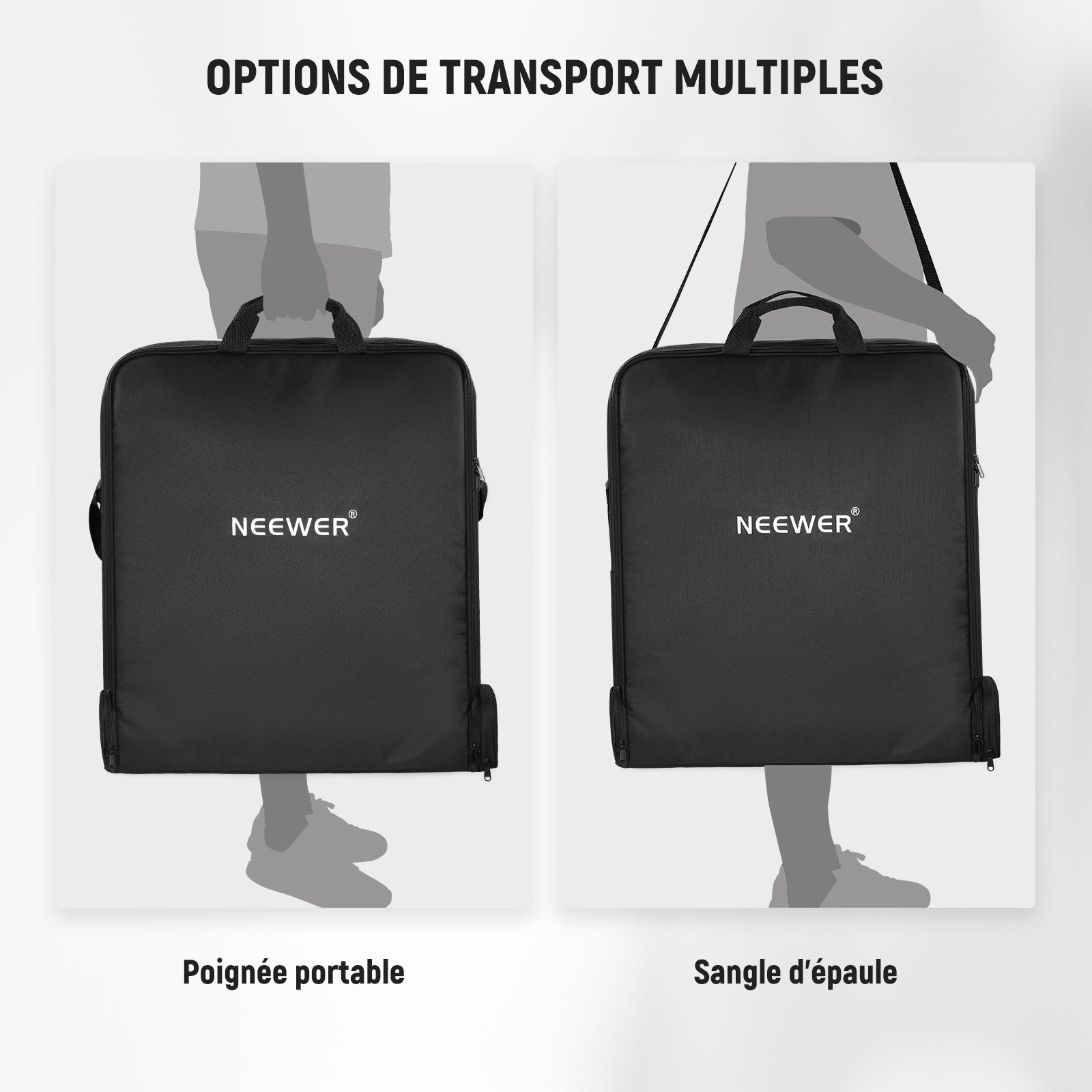 • Transportez-le à votre façon:  Vous pouvez le saisir sur la poignée confortable sur le dessus et le porter à la main, ou porter le sac sur une épaule ou en bandoulière. La bandoulière réglable avec coussinets antidérapants empêche la sangle de tomber pendant le transport et ajoute du confort à votre épaule