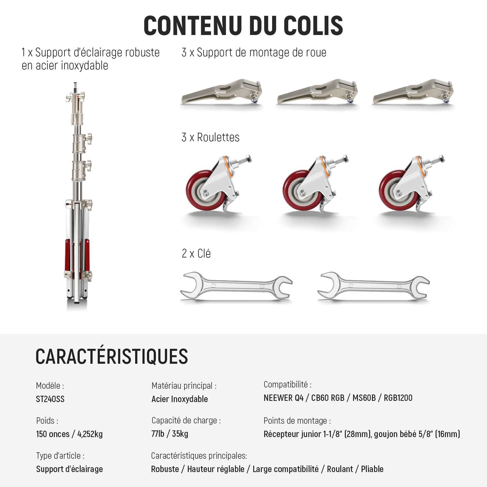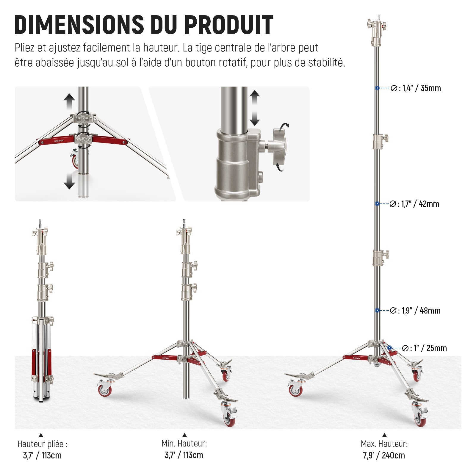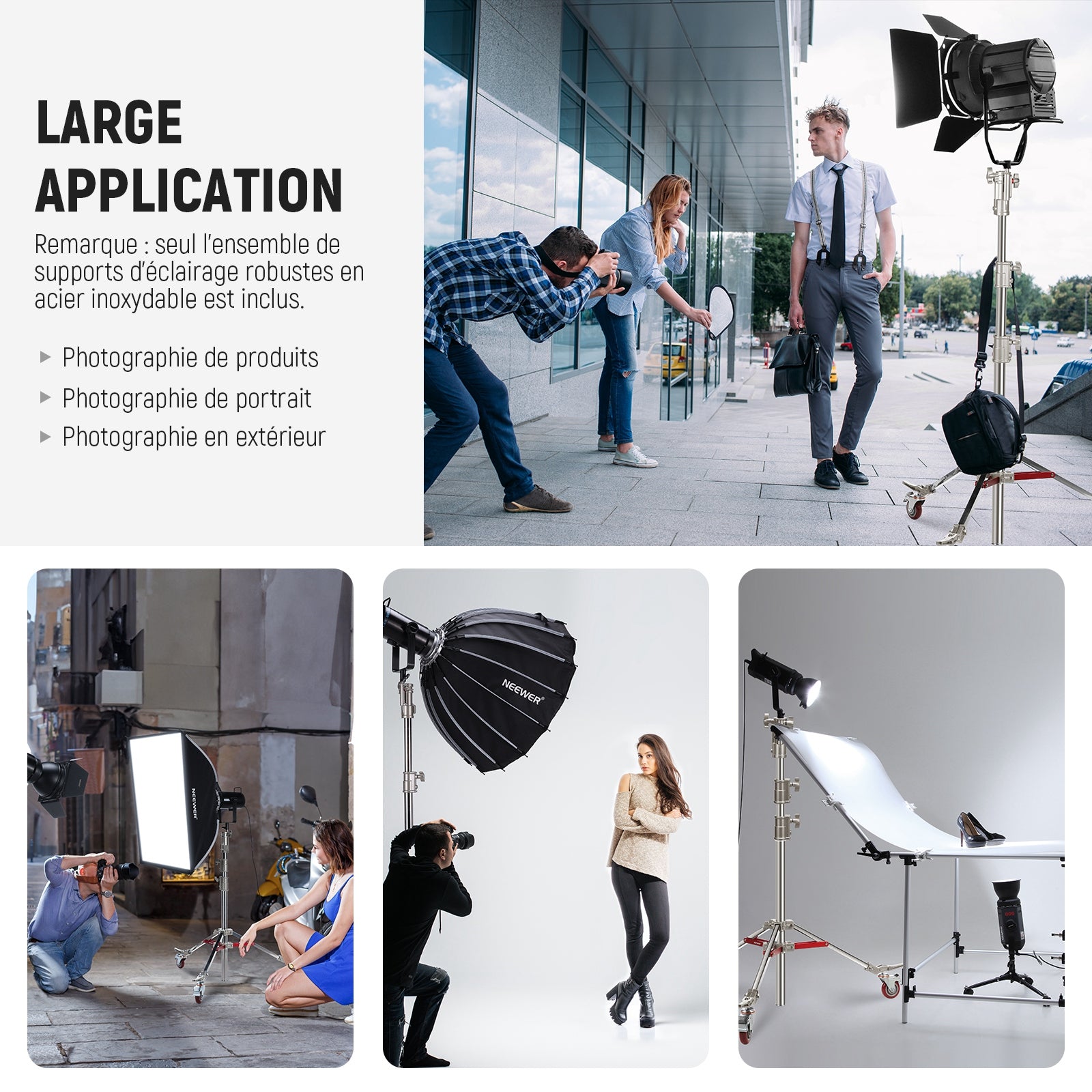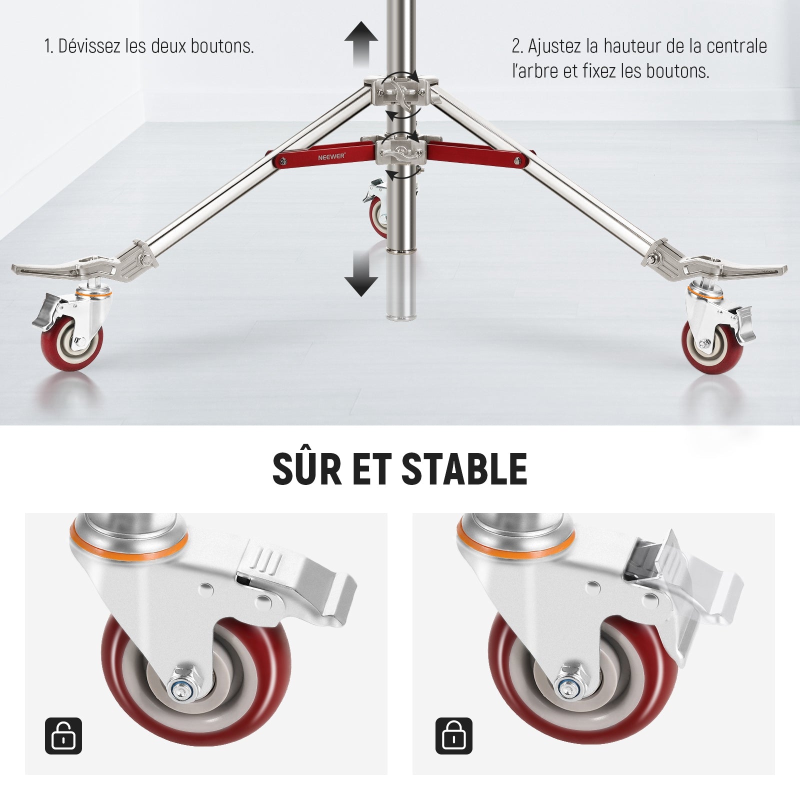 NEEWER ST240SS Support d'éclairage Robuste en Acier Inoxydable avec roulette