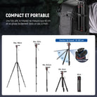 - 【Pieds réversibles et utilisation portable】 Pesant seulement 1,6kg, ce trépied portable est doté de pieds réversibles qui se replient vers le haut à 180° et se replient à un diamètre compact de 11,5cm pour un rangement et un transport faciles, idéal pour le vlogging de voyage, les selfies, la photographie, les vidéos YouTube et la diffusion en direct à l'intérieur et à l'extérieur