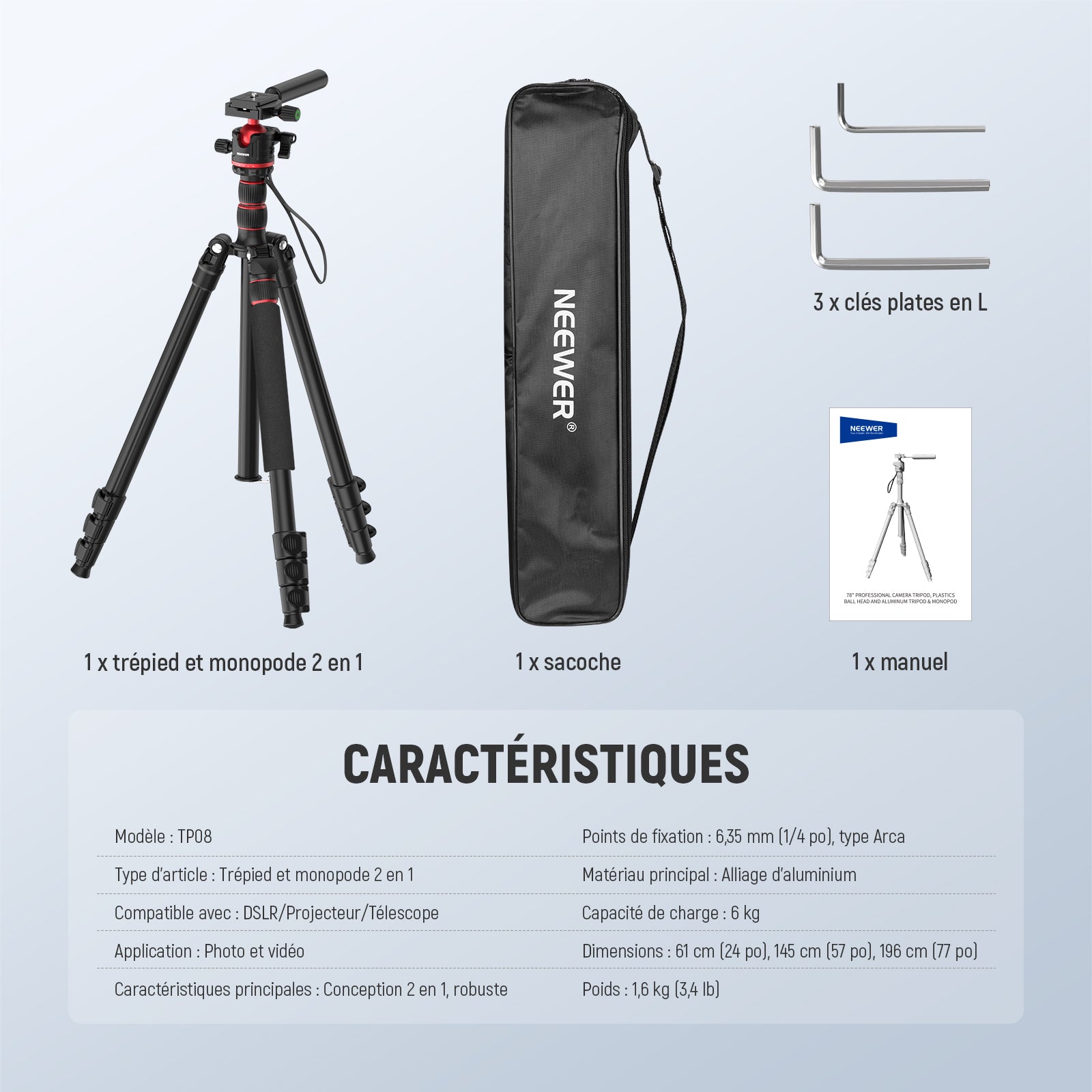 NEEWER TP08 Trépied Monopode pour Caméra 77"/196cm