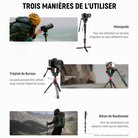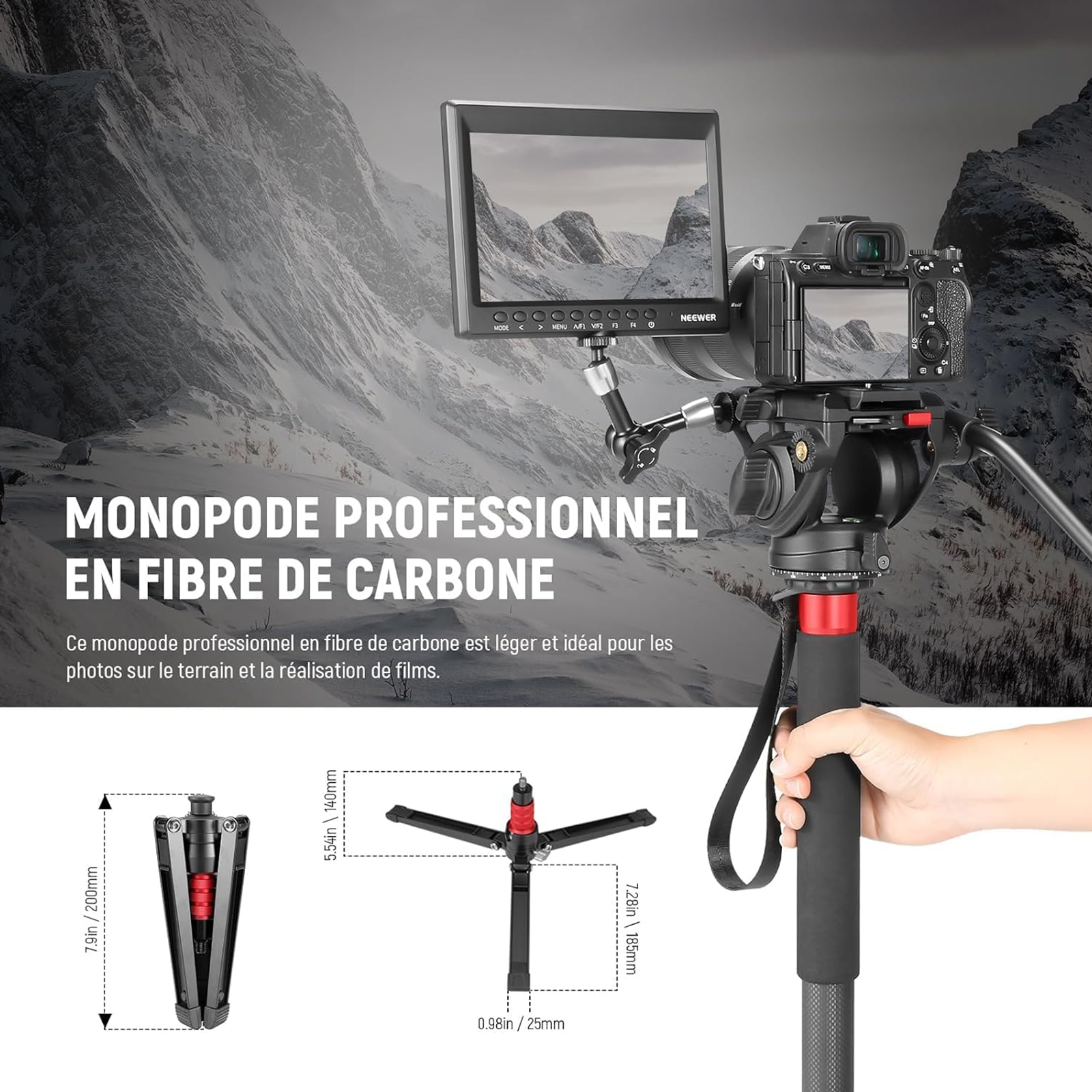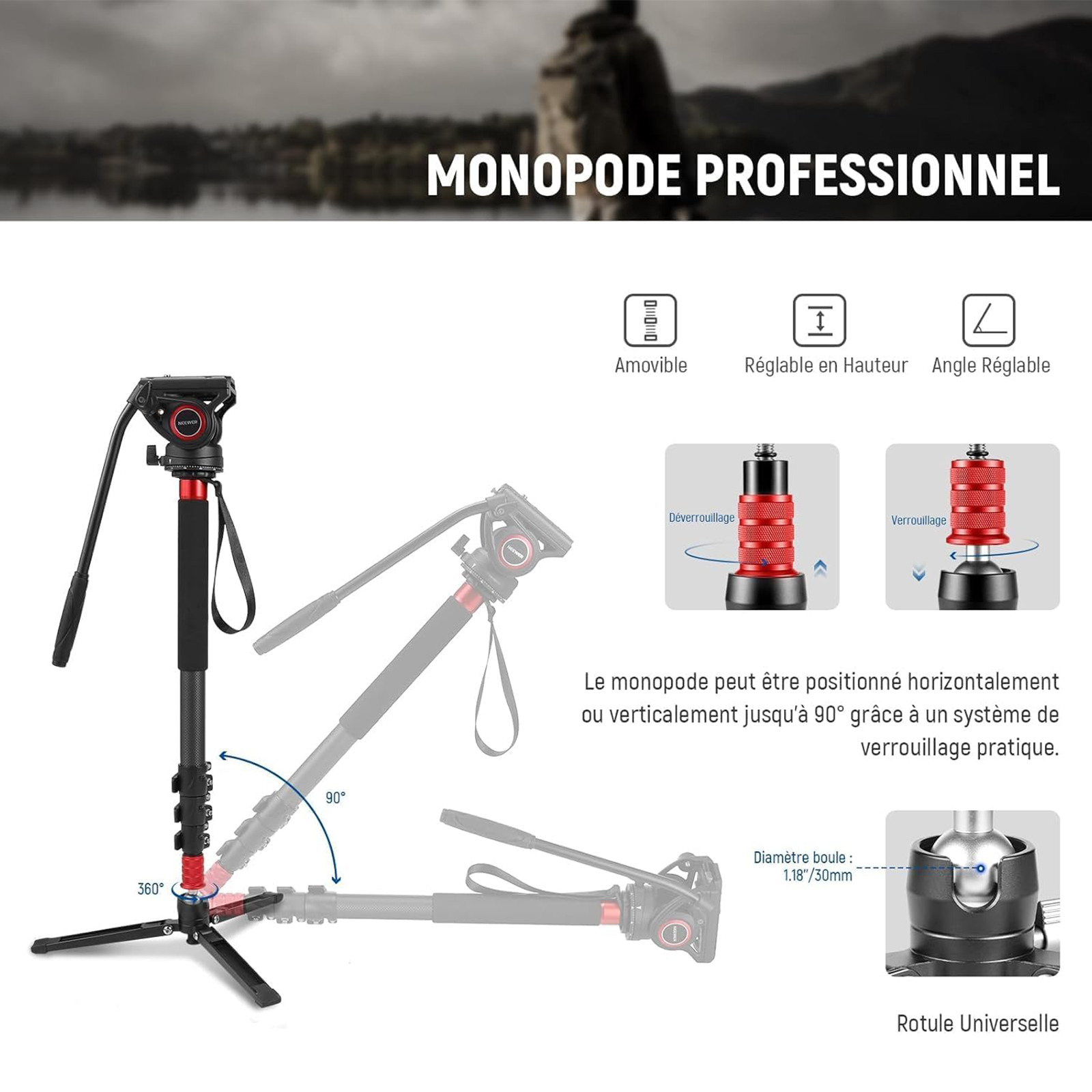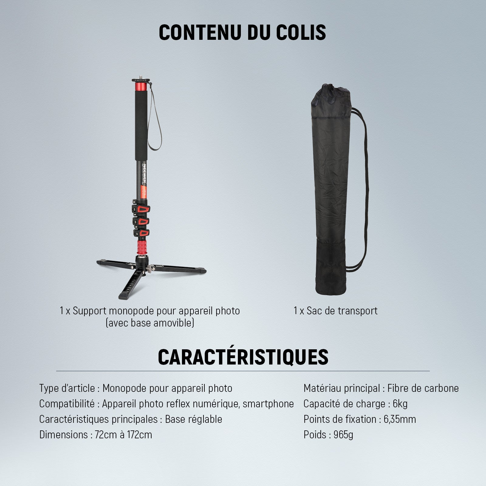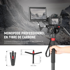 - Construction en fibre de carbone et facile à transporter : fabriqué en fibre de carbone, le monopode pèse 965 g mais supporte jusqu'à 6 kg de manière stable pour la photographie et la production vidéo sur site. En outre, le bâton de tir mono pod sert également de bâton de randonnée et comprend un cordon et un sac de transport pour un transport sans effort. C'est un outil polyvalent pour les voyages, la randonnée et la capture de superbes photos lors de vos déplacements