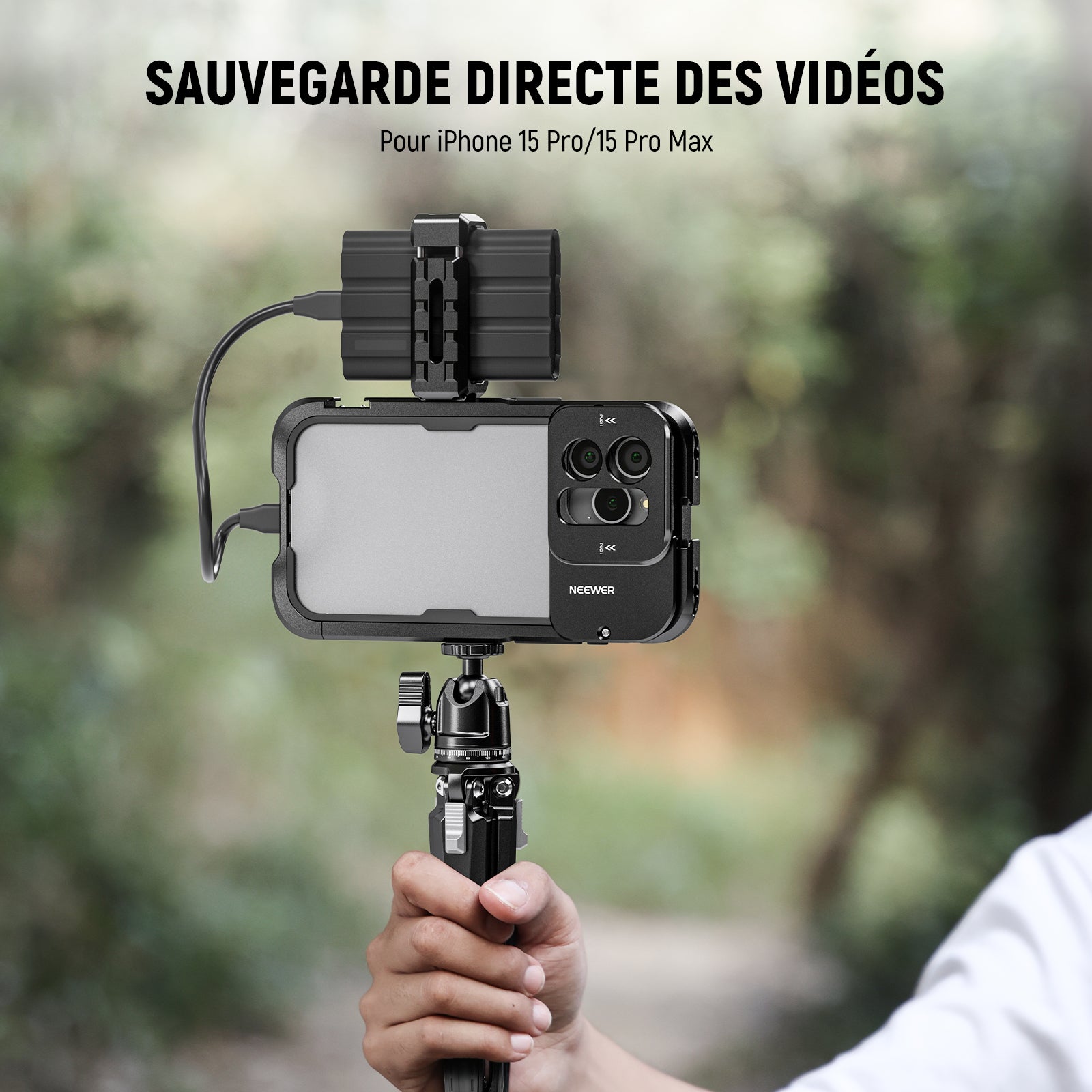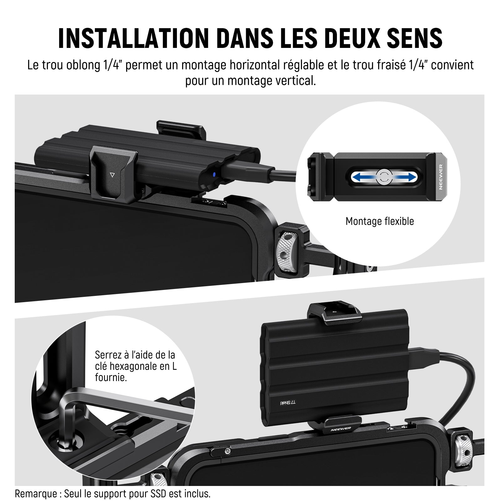 • 【Sauvegarde vidéo directe pour iPhone 16 15 Pro/16 15 Pro Max】 Fixez ce support de serrage SSD à la griffe froide des cages de téléphone NEEWER PA023/PA024 pour iPhone 16 15 Pro/16 15 Pro Max pour permettre la sauvegarde directe des vidéos 4K et ProRes enregistrées sur le 16 15 Pro et 16 15 Pro Max aux SSD T5/T7/T9, et profitez d'un espace de stockage suffisant pour des possibilités créatives illimitées