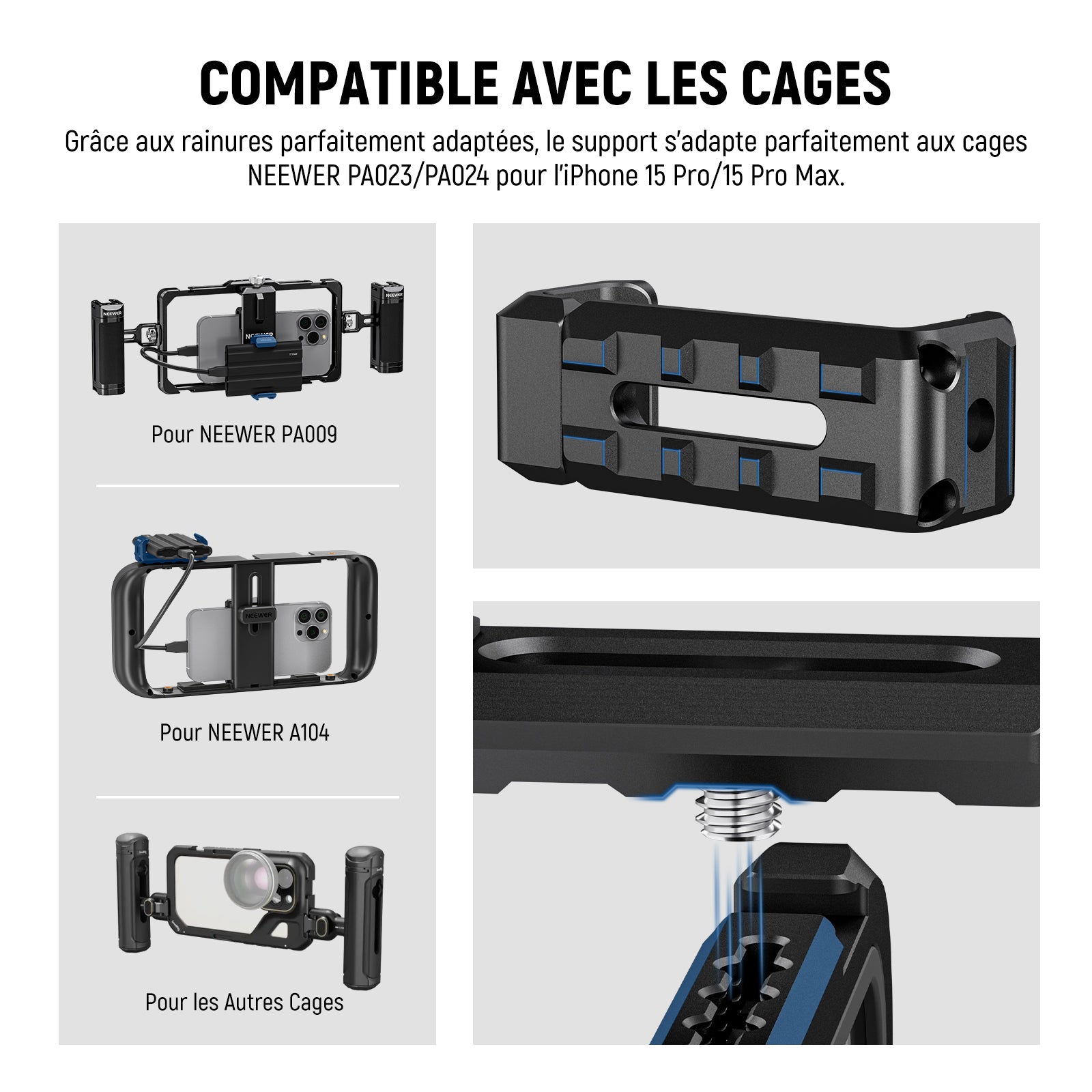 • 【Bords biseautés anti-torsion pour une grande stabilité】Les bords biseautés sur le bas de la pince peuvent maintenir le support solidement monté sur la cage de téléphone NEEWER PA023 PA024 et empêcher la déviation. Un renforcement est nécessaire à l'aide de la clé hexagonale en forme de L incluse pour les autres cages