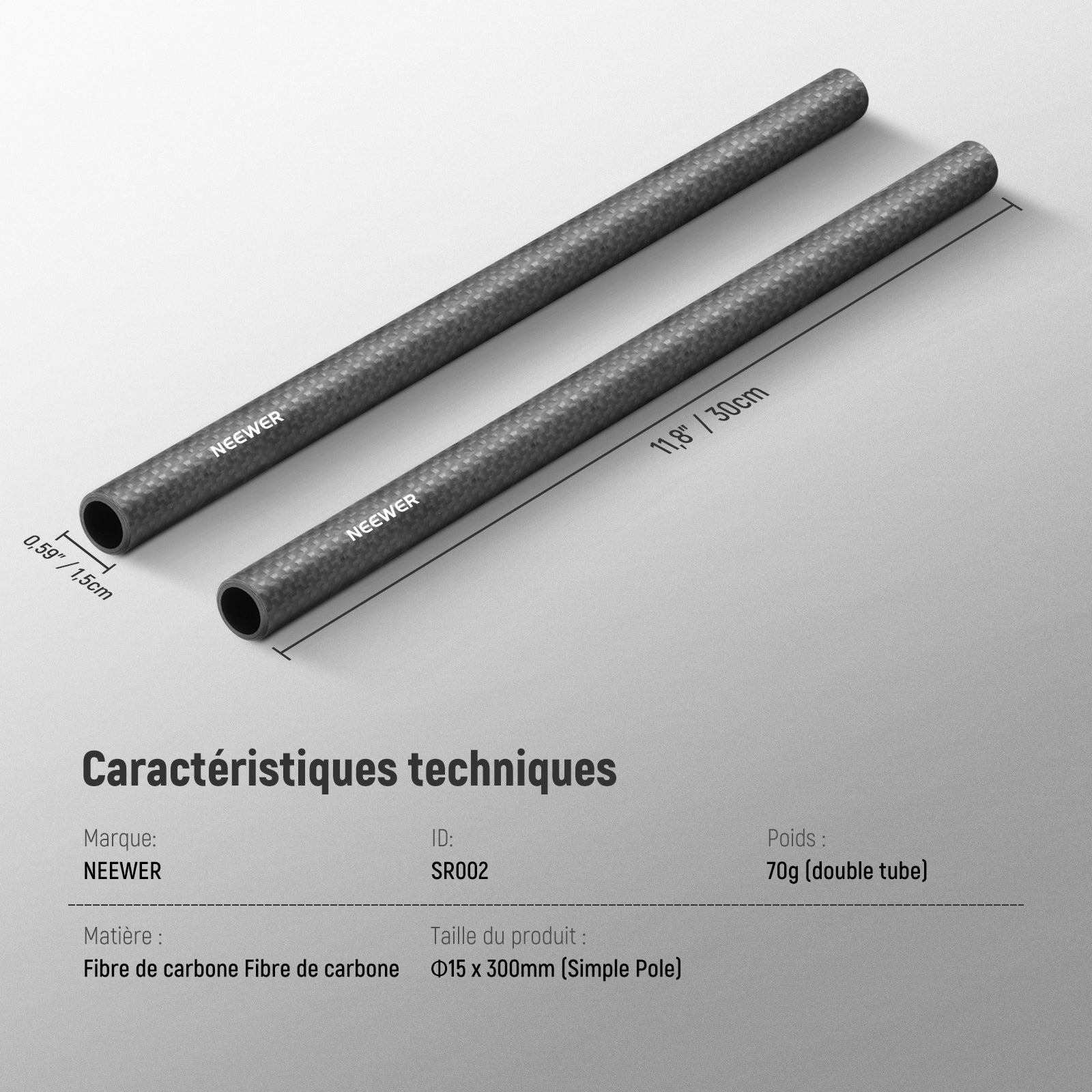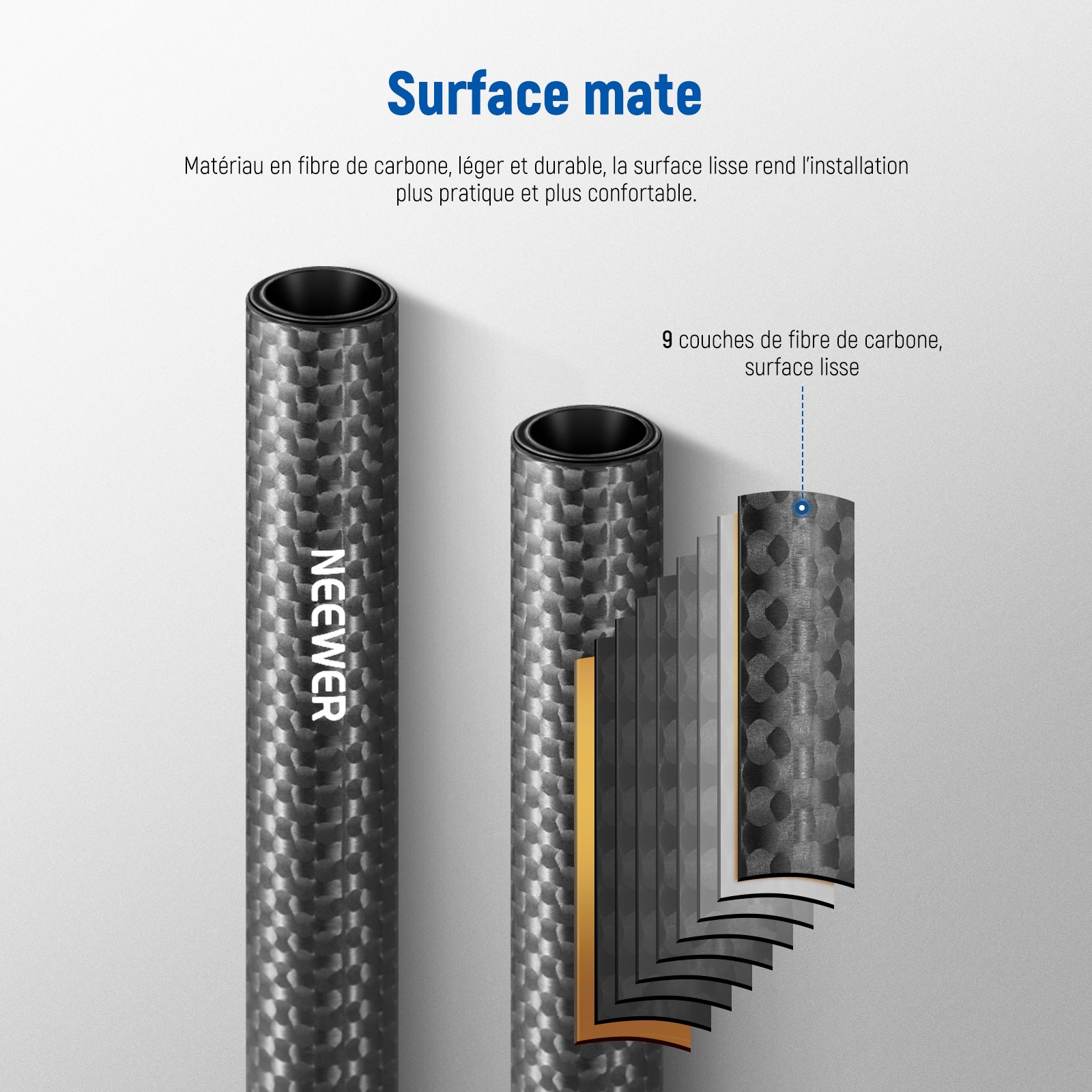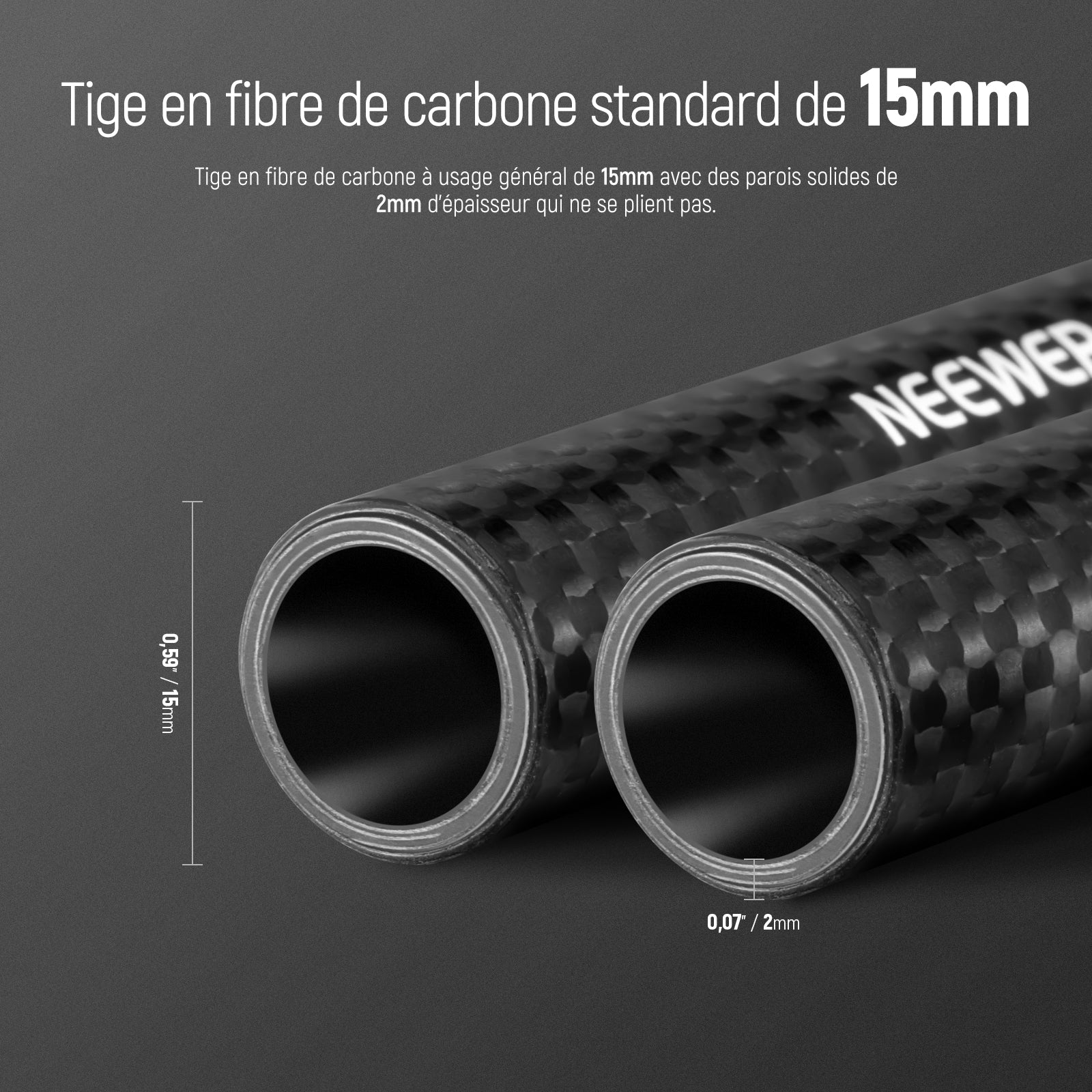 NEEWER SR002/SR003 Tiges d'Extension de 15mm en Fibre de Carbone (Pack de 2)