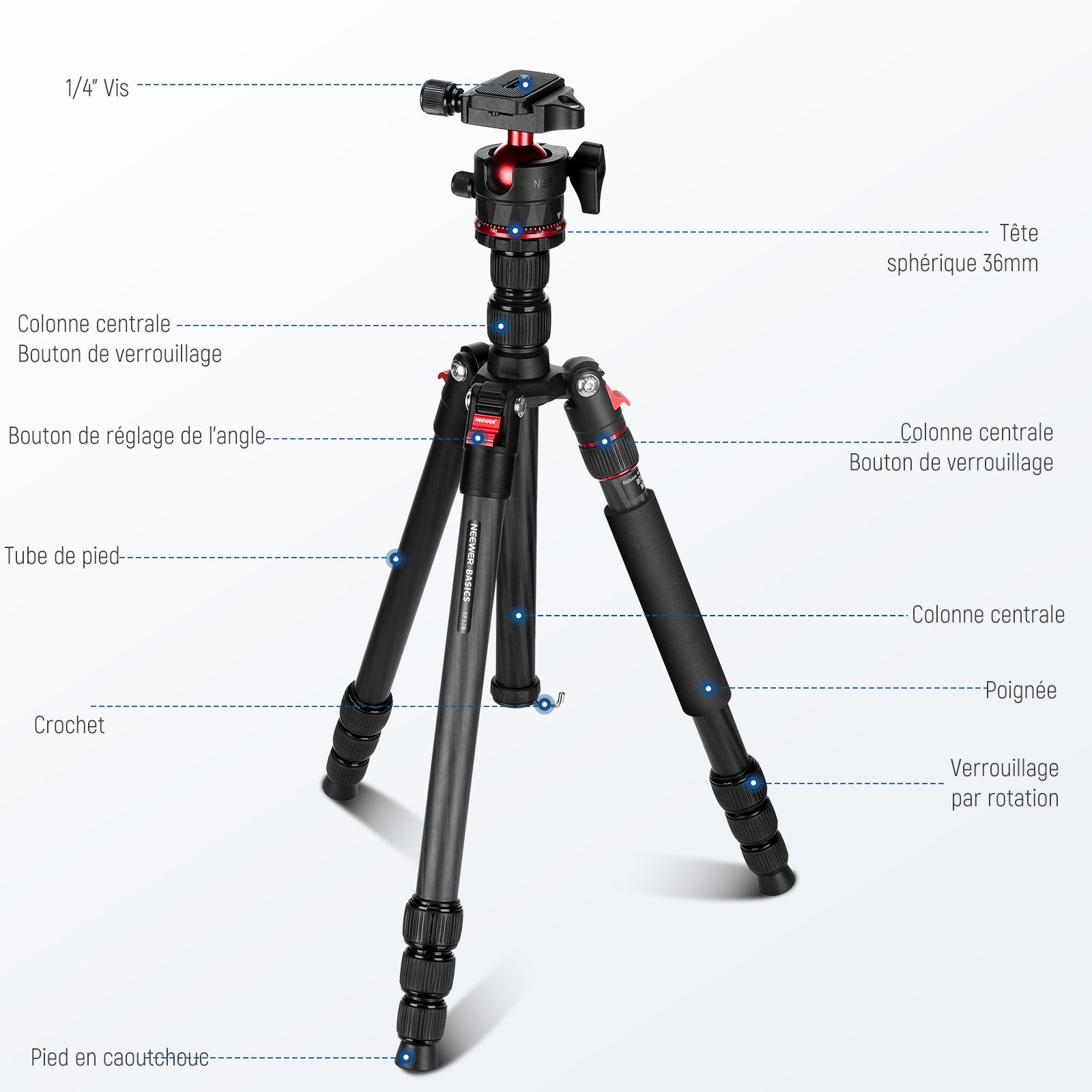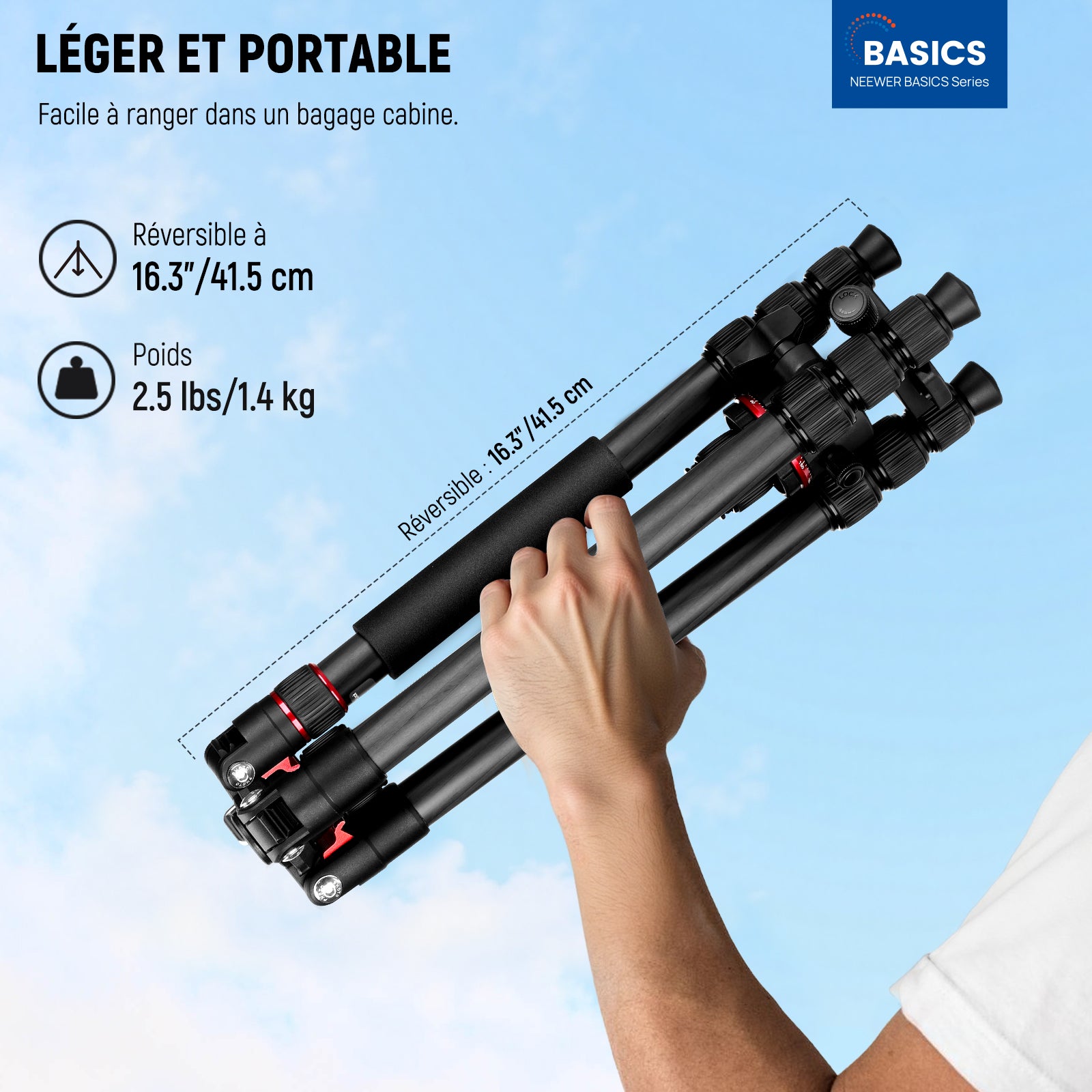 NEEWER BASICS TP17B Trépied de Voyage 162 cm / 64" en Fibre de Carbone Monopode