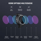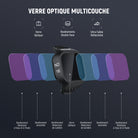 - Verre optique multicouche : le verre optique avec revêtement multicouche double face assure une séquence claire tout en résistant à l'eau, aux traces de doigts et aux rayures. Un chiffon de nettoyage est inclus pour un entretien quotidien