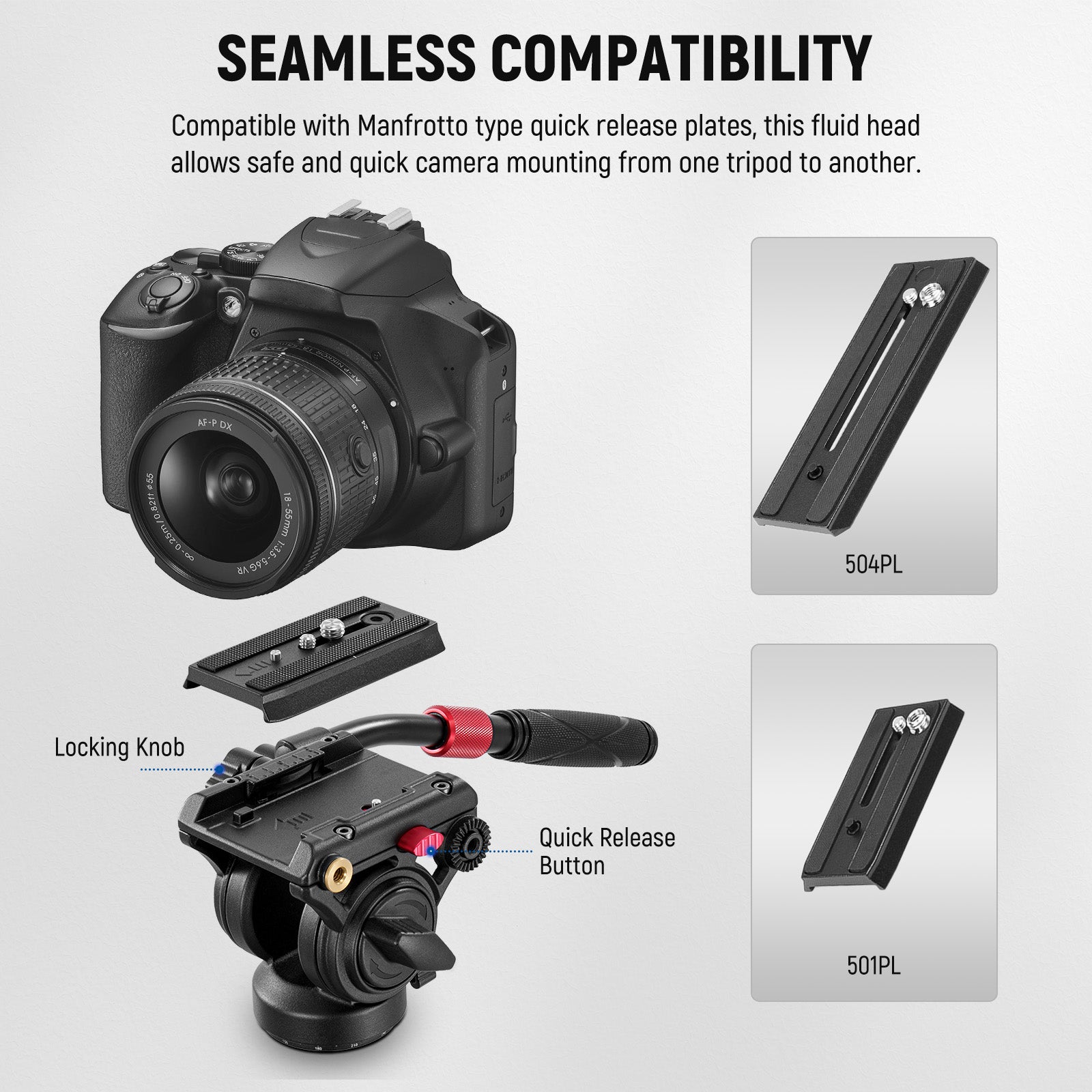 NEEWER GM001 Tête Fluide en Métal pour Trépied Vidéo