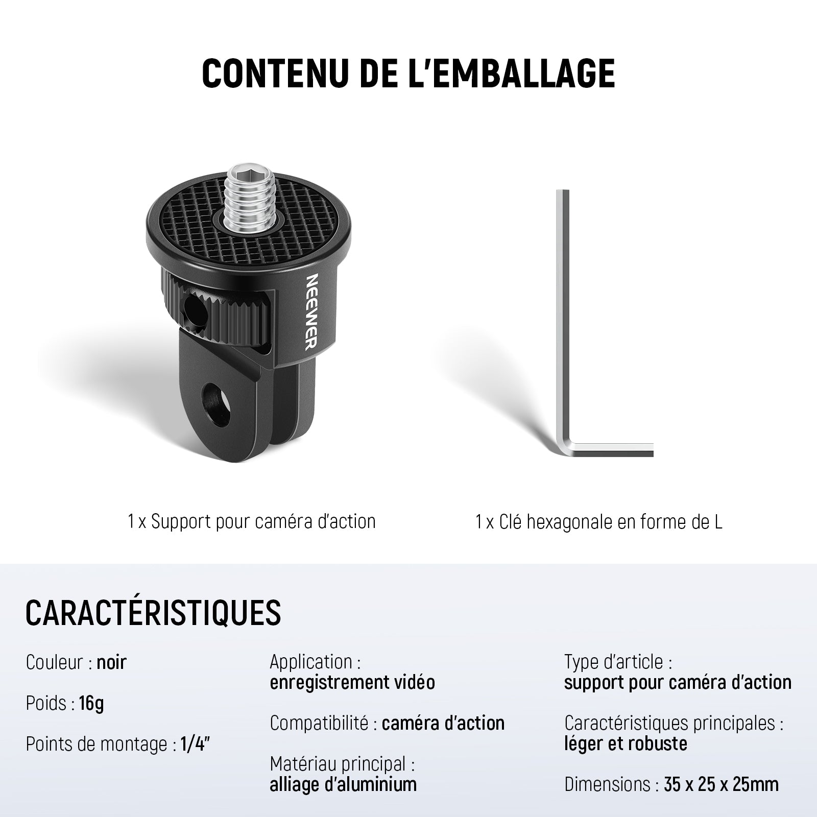 NEEWER GP-7 Adaptateur de Montage pour Caméra d'action avec vis 6