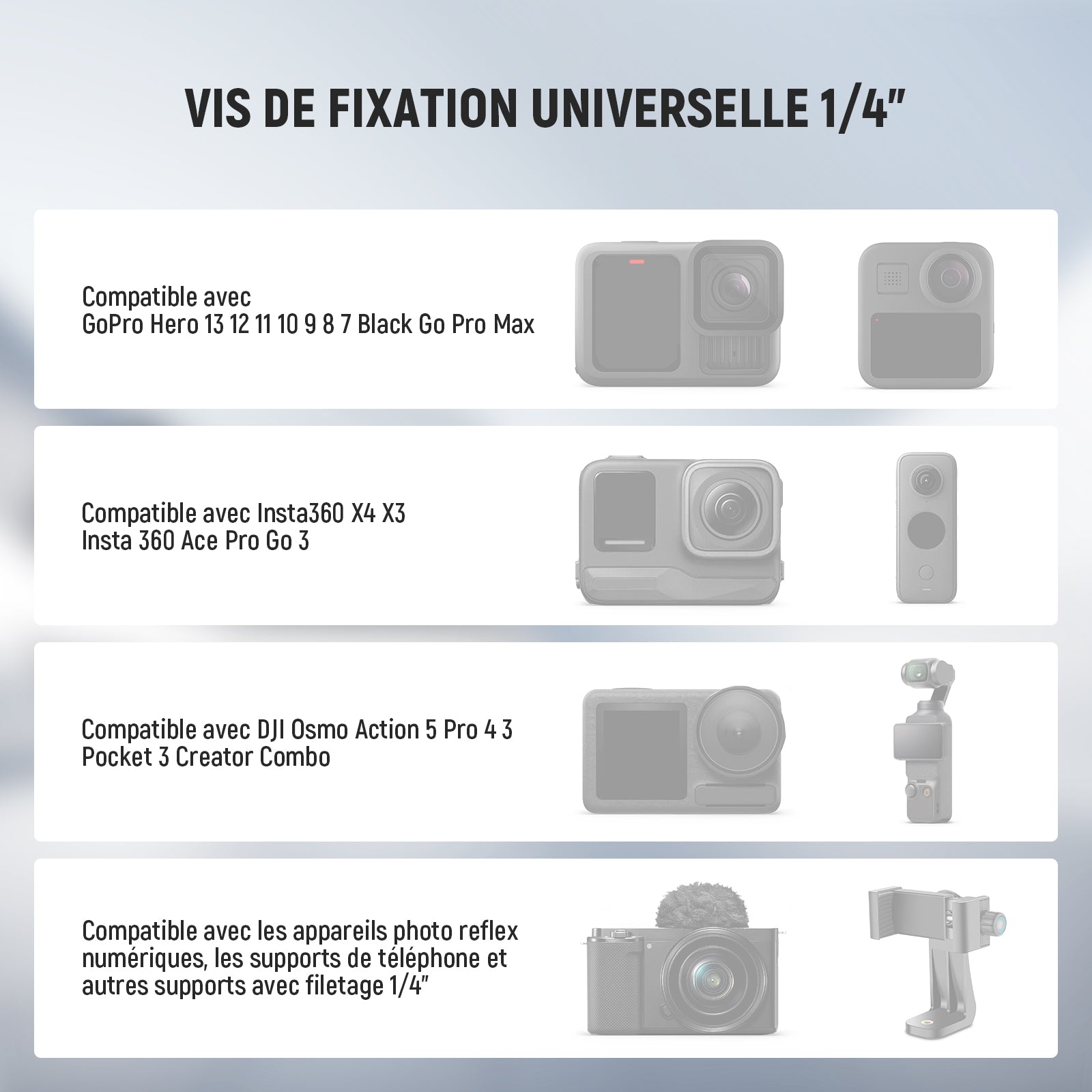 - Type d’article : Adaptateur pour caméra d’action 1/4"
