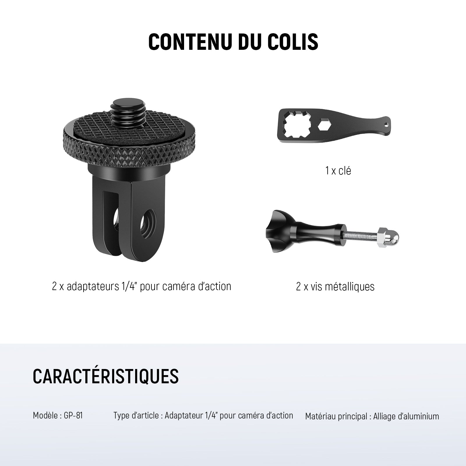 - 2 x Adaptateur pour caméra d’action 1/4"