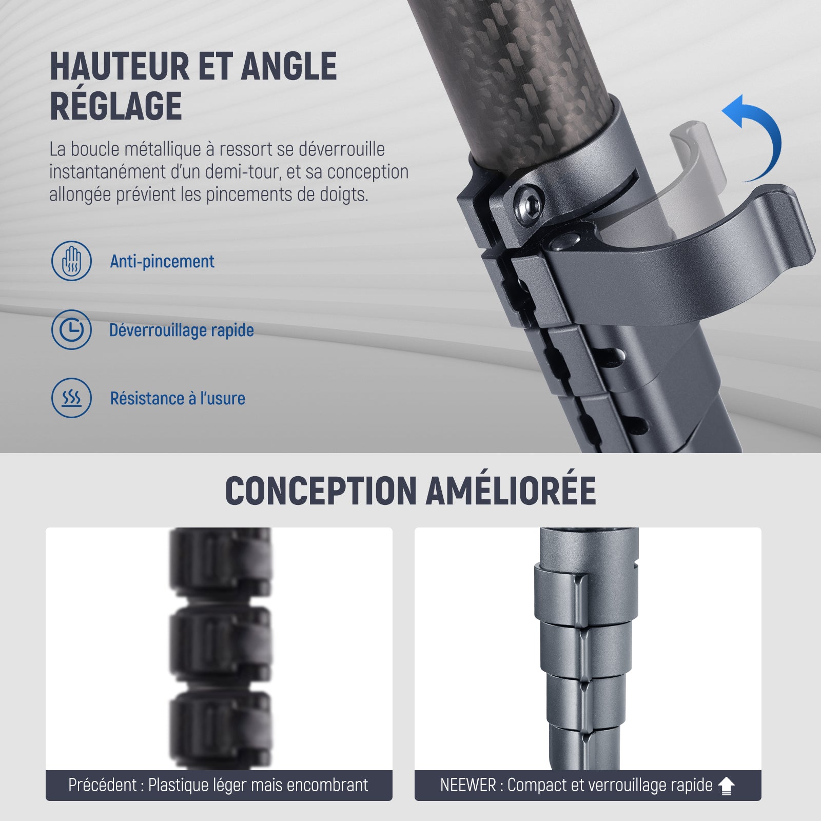 NEEWER LT34 Fibre Carbone Trépied de Voyage 62"/157cm