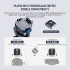 - 【Rotule métallique discrète et amovible】 La rotule métallique de 32 mm avec centre de gravité bas améliore la stabilité et permet des prises de vue panoramiques fluides à 360°. Elle est dotée d'une fente en U pour une prise de vue verticale à 90° et d'un niveau à bulle pour un alignement précis. La colonne centrale et la rotule sont amovibles pour les prises de vue en contre-plongée. Un équipement photo indispensable pour les créateurs de contenu et les influenceurs.