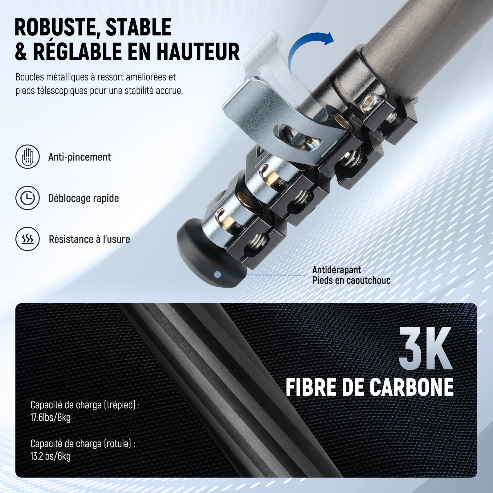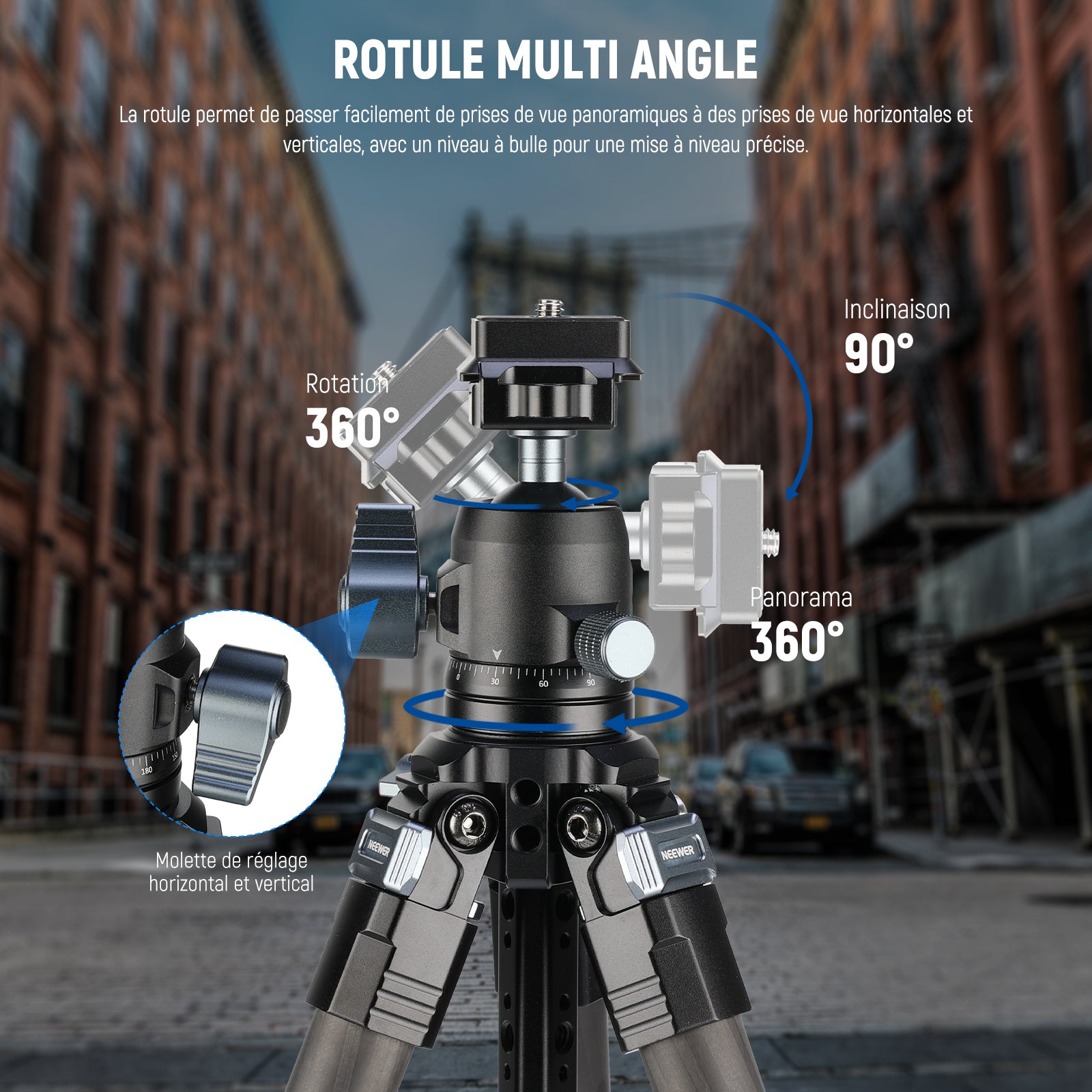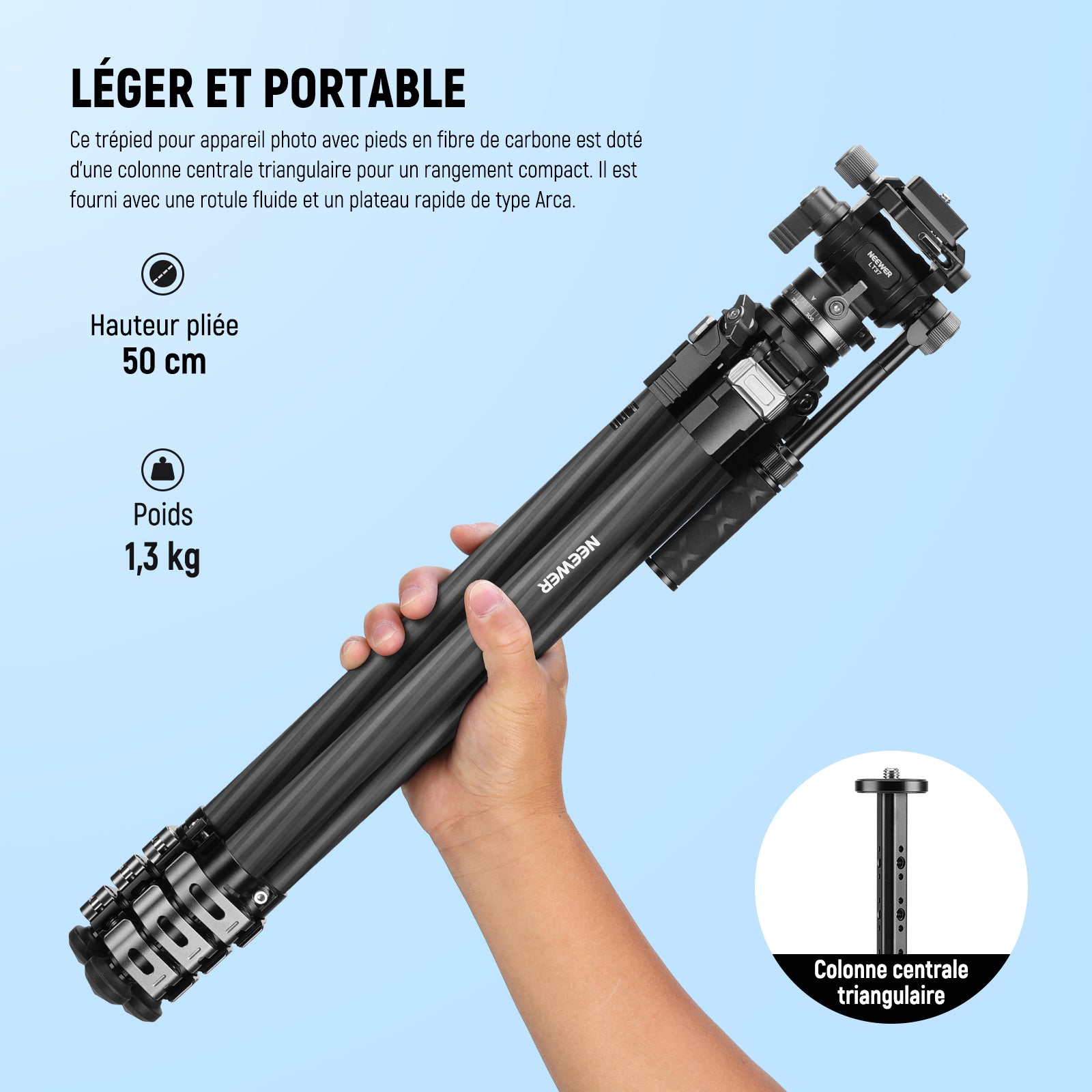 NEEWER LT36/LT37 Trépied de Voyage en Fibre de Carbone de 153,4 cm