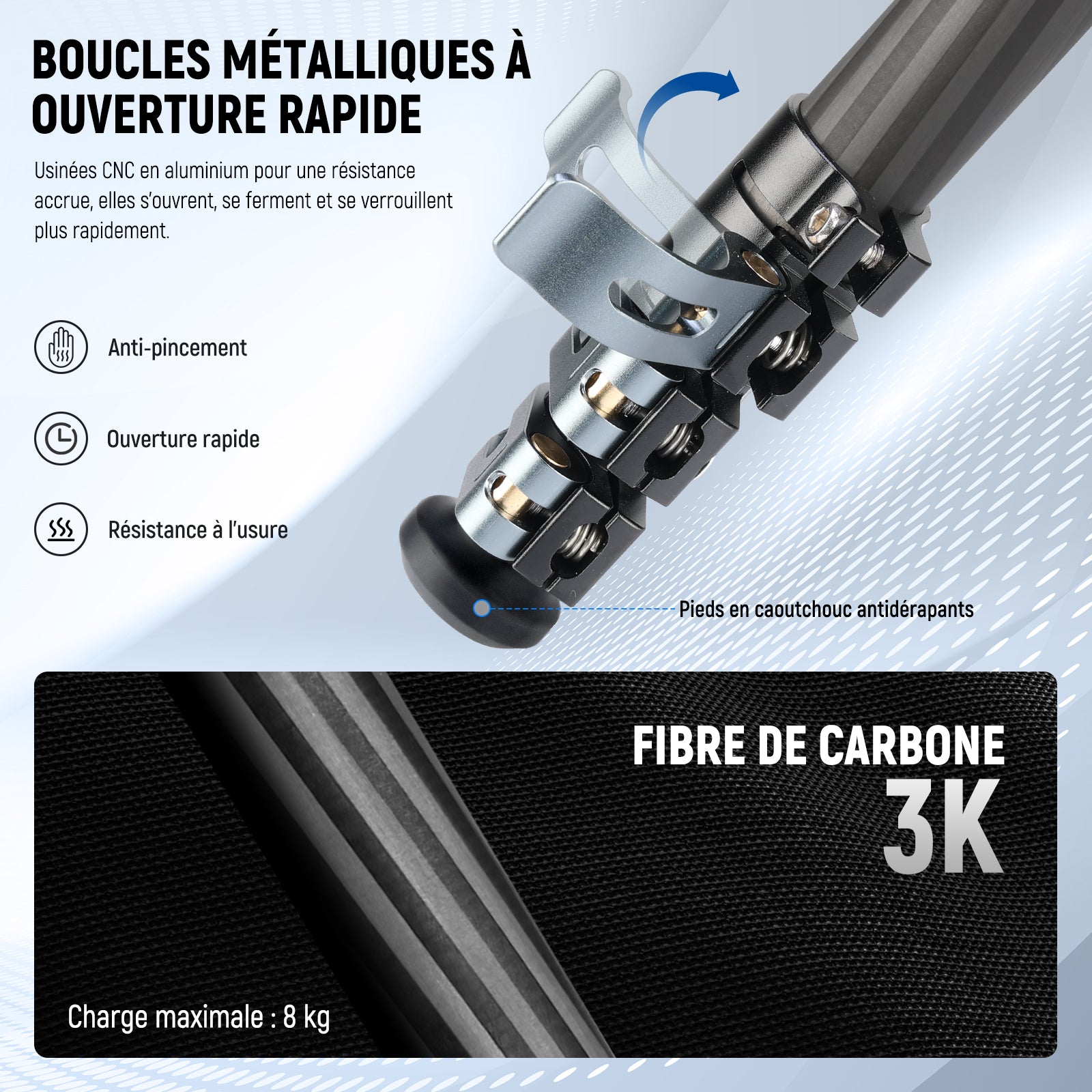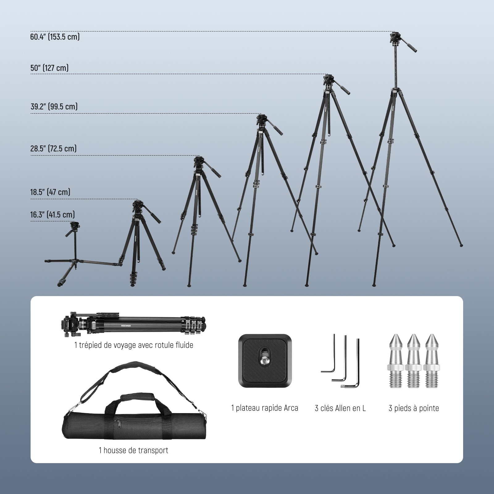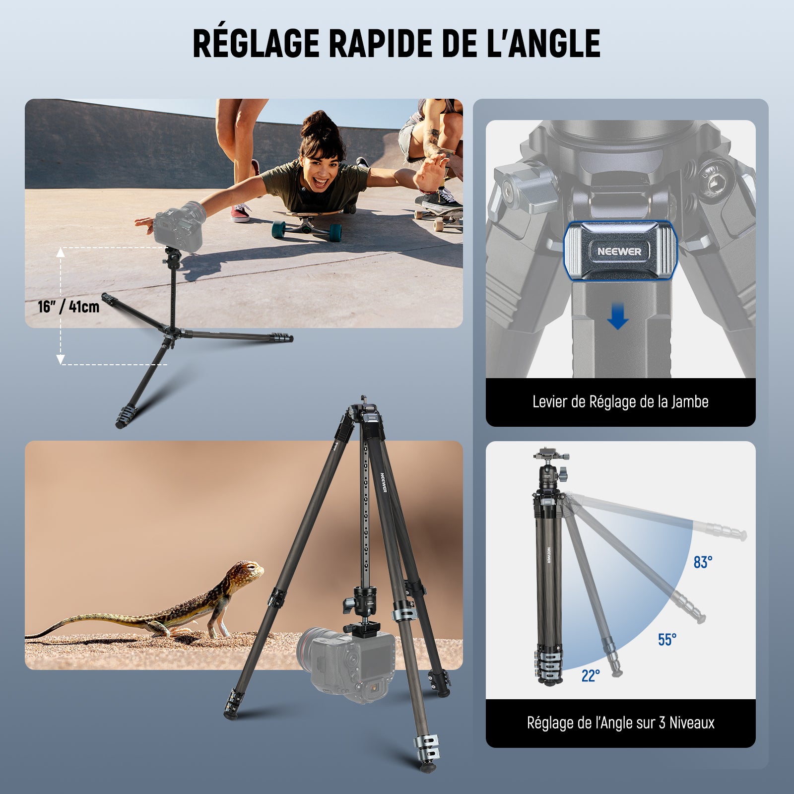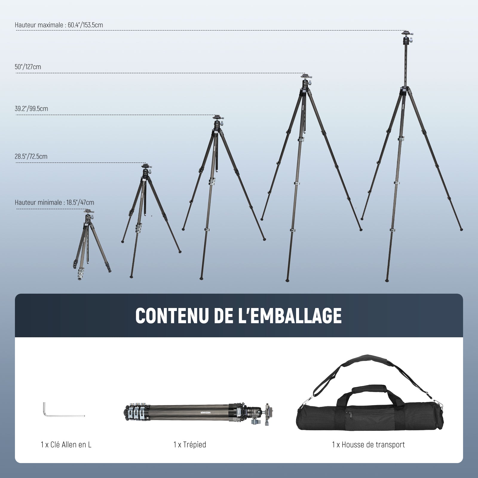 NEEWER LT36/LT37 Trépied de Voyage en Fibre de Carbone de 153,4 cm