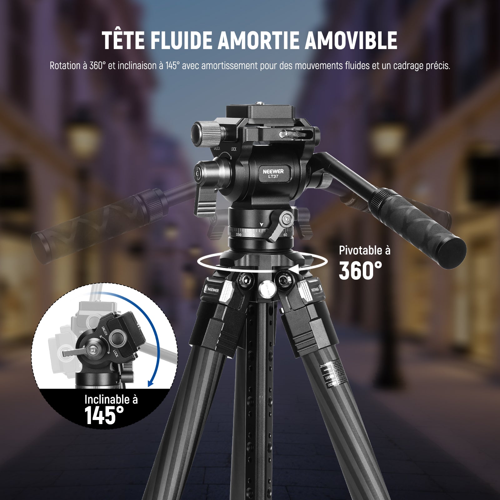 - Trépied de voyage à tête fluide(LT37) : Trépied portable pour appareil photo est doté de tubes de jambe en fibre de carbone, légers mais robustes pour les caméscopes DSLR (compatibles avec Canon Sony Nikon appareils photo),les téléobjectifs, d'autres accessoires de photographie ou d'équipement de vidéographie jusqu'à 17,6lb (8kg).Sa colonne centrale triangulaire permet un rangement compact, avec une longueur pliée de 50cm. L'ensemble ne pèse que 1,3kg