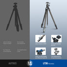 - Trépied de voyage avec tête sphérique(LT36) : le trépied portable pour appareil photo dispose de tubes de pieds en fibre de carbone, léger mais robuste pour les caméscopes reflex numériques (compatible avec les appareils photo Canon Sony Nikon), les téléobjectifs, d'autres accessoires de photographie ou équipements de vidéo jusqu'à 8 kg. Sa colonne centrale triangulaire permet un rangement compact, avec une longueur pliée de 51 cm. Comprend une tête sphérique et une plaque à dégagement rapide, l'ensemble de la configuration ne pèse que 1,08 kg, idéal pour les photographes en déplacement
