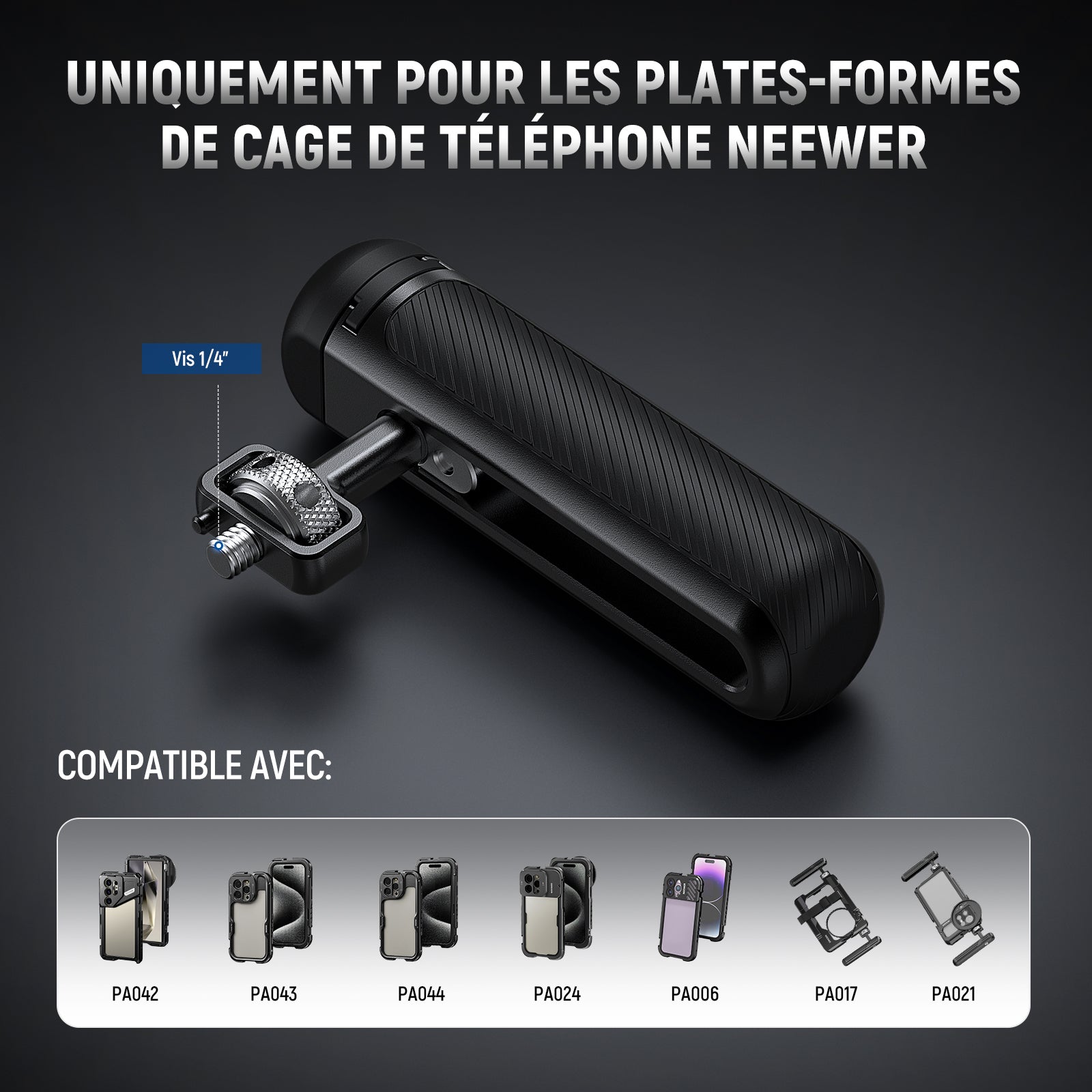 - 【Uniquement pour les plates-formes de cage de téléphone NEEWER】 Cette poignée latérale est uniquement conçue pour les stabilisateurs de plate-forme vidéo de cage de téléphone NEEWER, y compris PA006 PA011 PA017 PA021 PA022 PA023 PA024 PA042 PA043 PA044 PA088. Remarque : non compatible avec SmallRig cages de téléphone