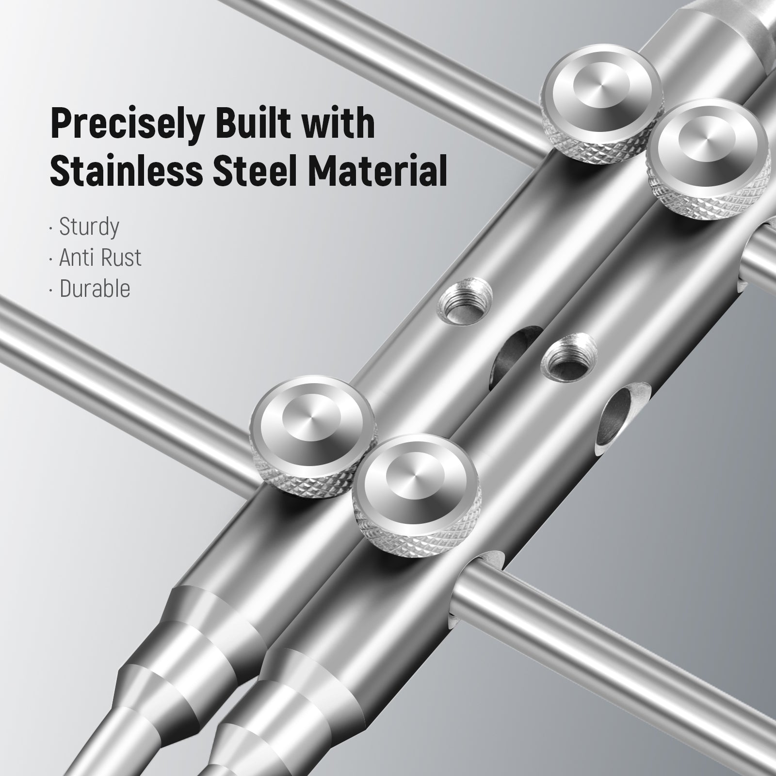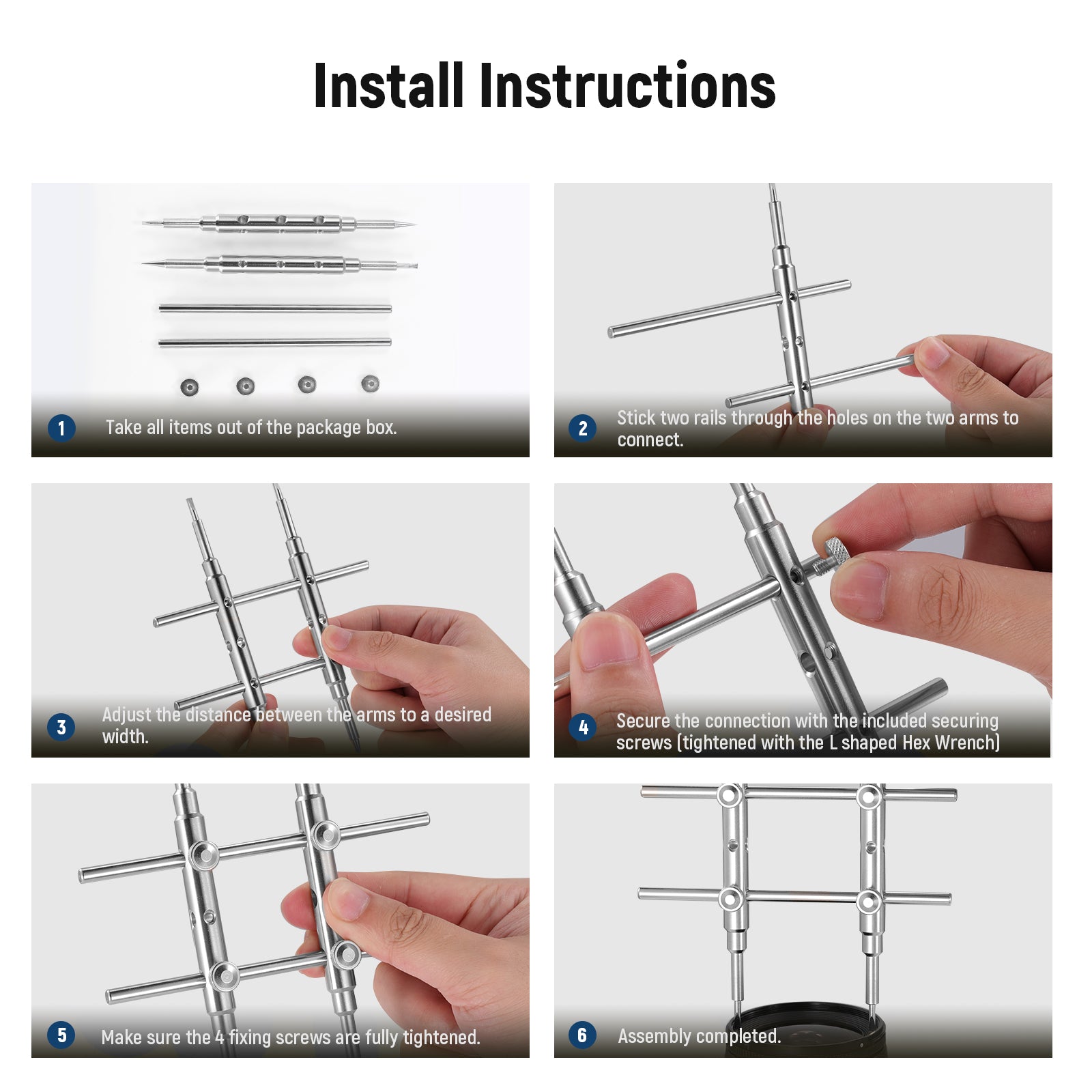 - 【Distance réglable entre les pointes】 La conception droite et perpendiculaire rend l'outil de retrait de lentille plus stable et rigide avec ses bras montés sur deux rails. Ajustez facilement la distance entre les deux pointes en desserrant les vis et en faisant glisser les bras, réglable de 5 mm à 100 mm