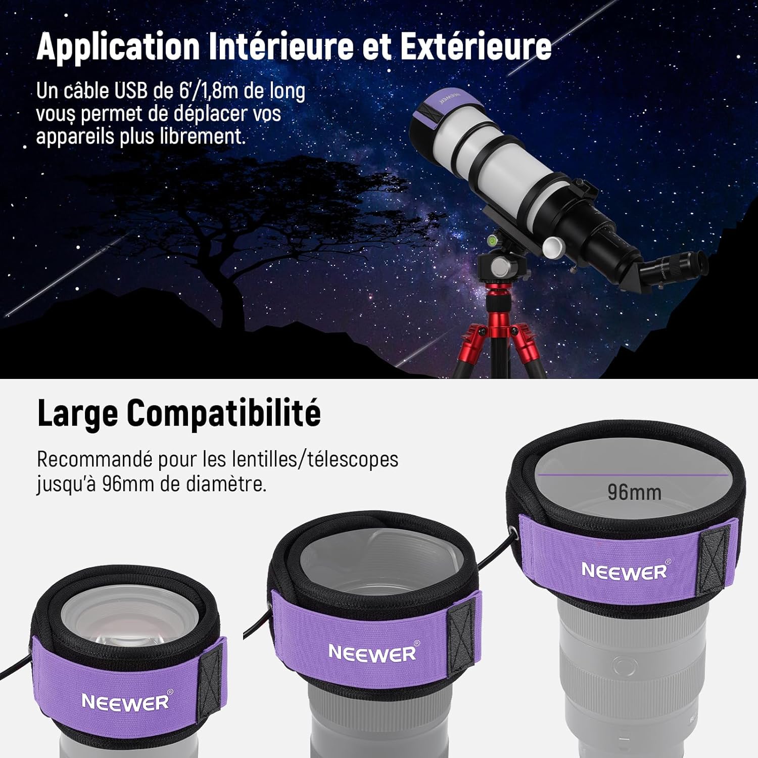 - 【Longueur de Chauffage Efficace de 12"/300mm】Éliminez la rosée, le brouillard et la condensation avec notre réchauffeur d'objectif spécialement conçu pendant la photographie par temps froid. Pour des performances optimales et un chauffage uniforme, il est recommandé de l'utiliser sur des objectifs ou des télescopes d'une circonférence allant jusqu'à 12"/300mm et un diamètre de 96mm