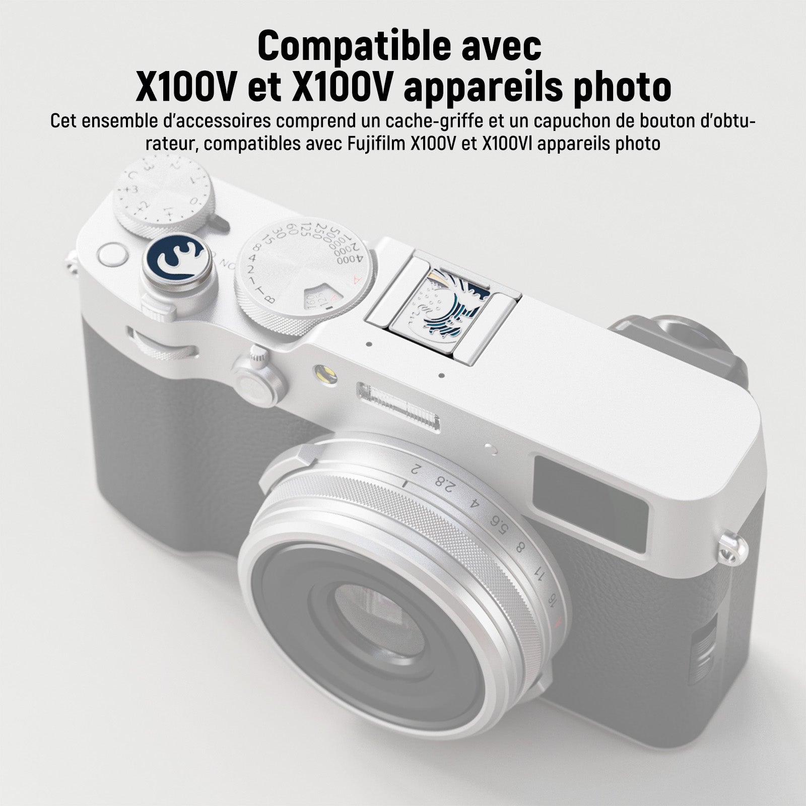 - 【Compatible avec X100V et X100VI】 Cet ensemble d'accessoires comprend un cache-griffe et un capuchon de bouton d'obturateur, compatibles avec Fujifilm X100V et X100VI appareils photo