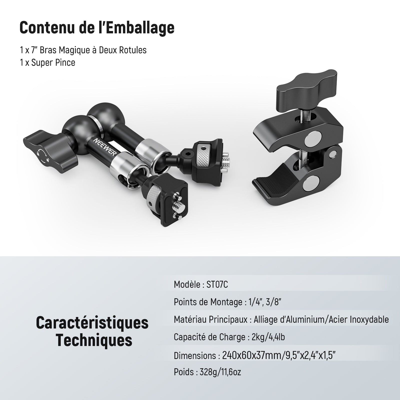 NEEWER ST07C/ST16C Bras magique avec super pince