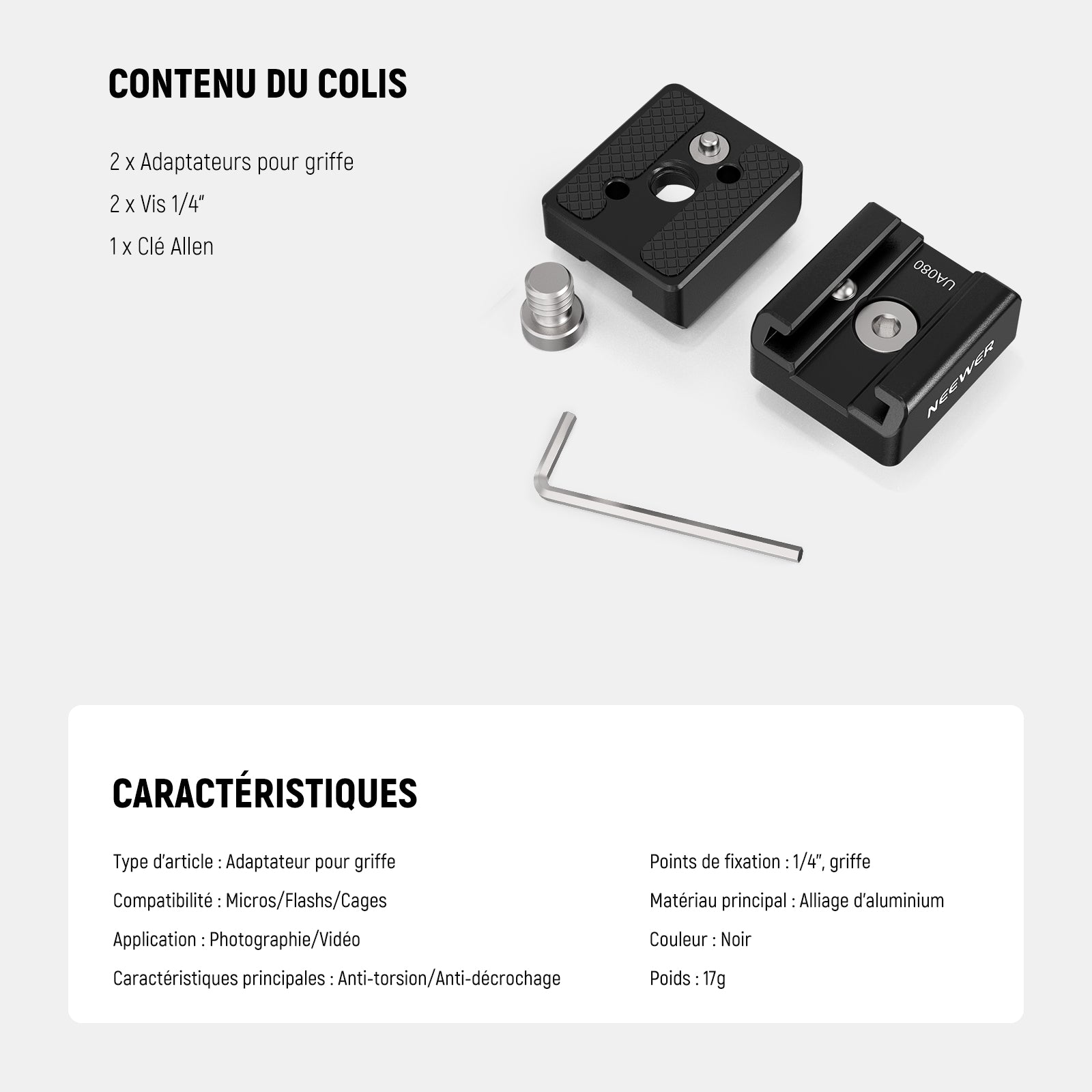 NEEWER UA080 Lot de 2 adaptateurs de montage pour griffe froide