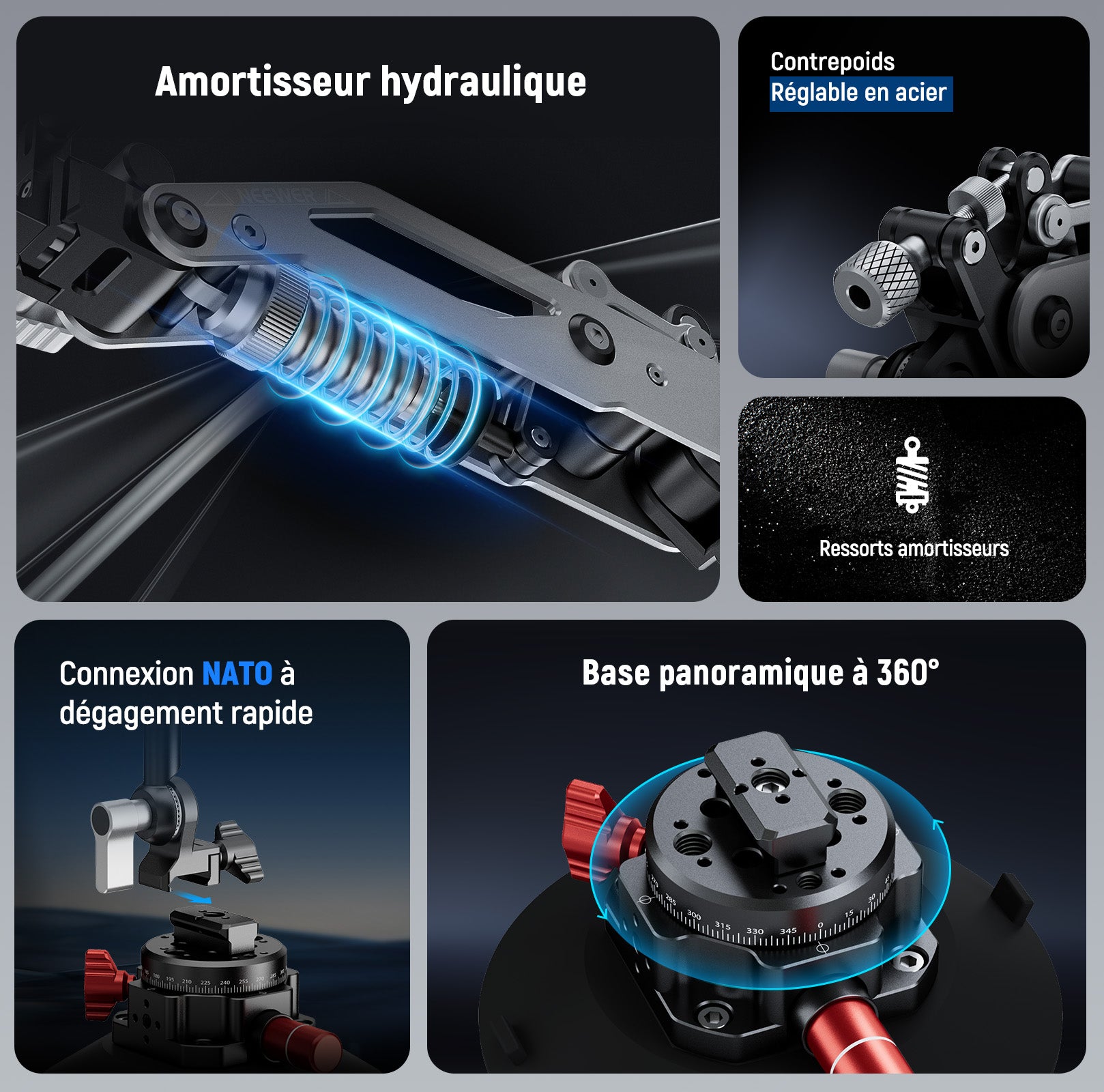 NEEWER GA022 Support Bras Hydraulique avec Ventouse pour Voiture