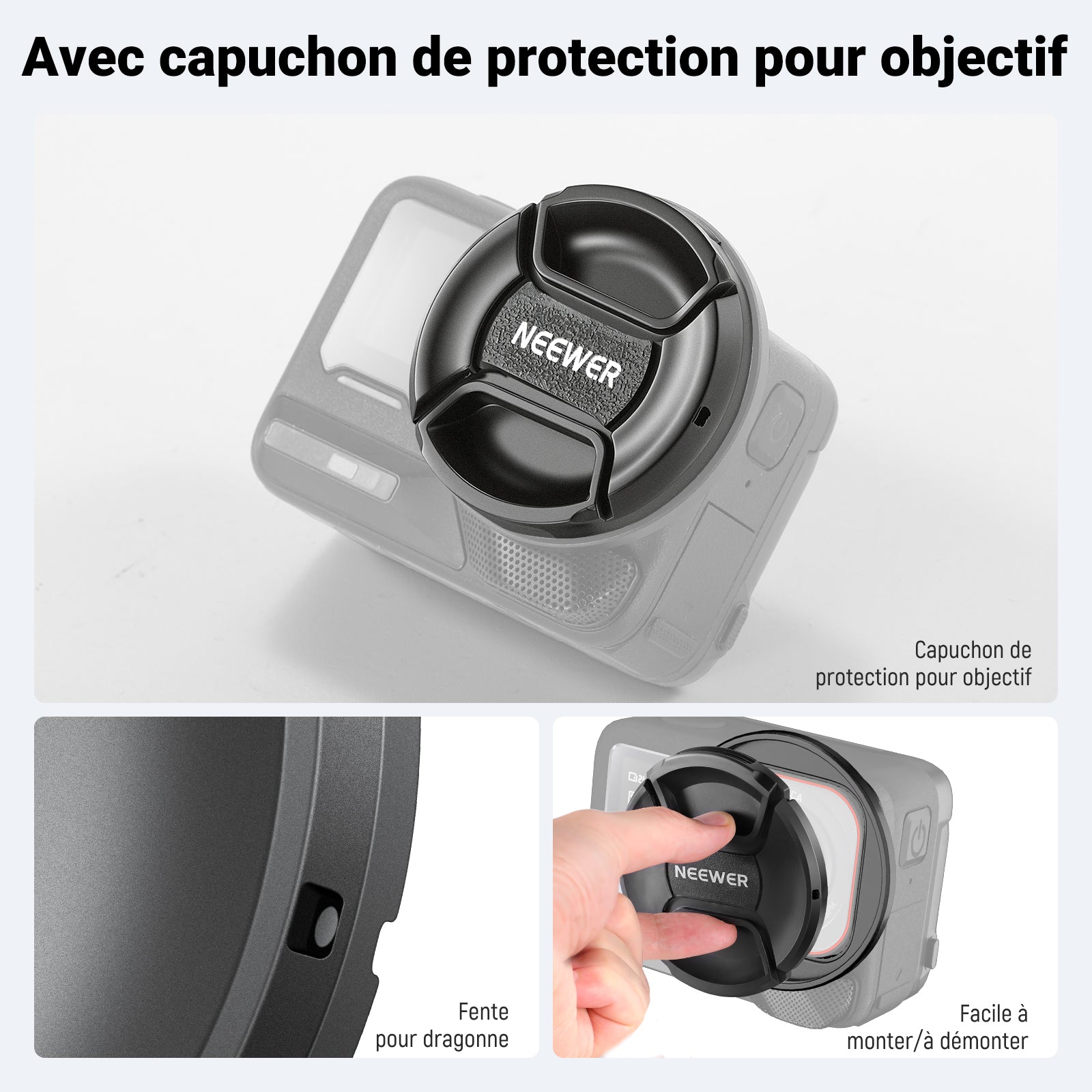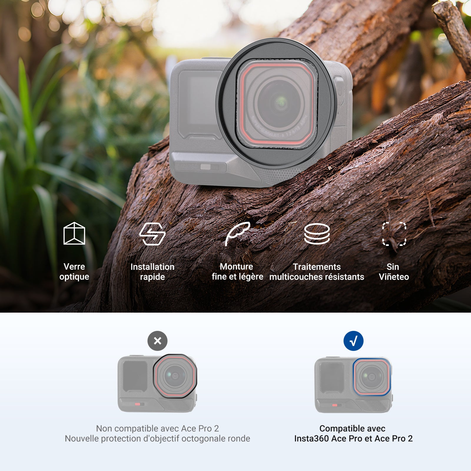 - 【Fixation rapide et facile】 Se fixe directement sur l'objectif et reste en place grâce à ses joints en caoutchouc antidérapants. Remarque : Non compatible avec la nouvelle protection d'objectif octogonale ronde de la dernière version Ace Pro 2