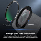- 【Compatible avec les filtres 49 mm】 Fonctionne avec tous les filtres d'objectif de 49 mm, tels que les filtres ND, CPL, à densité neutre variable et à diffusion noire, pour des enregistrements vidéo, des tournages et des vlogs créatifs et immersifs