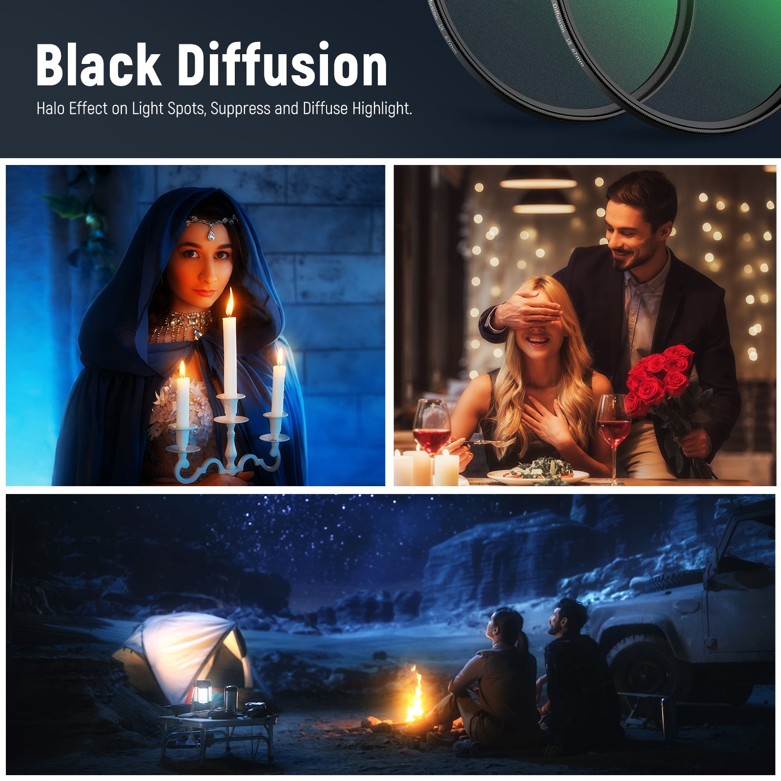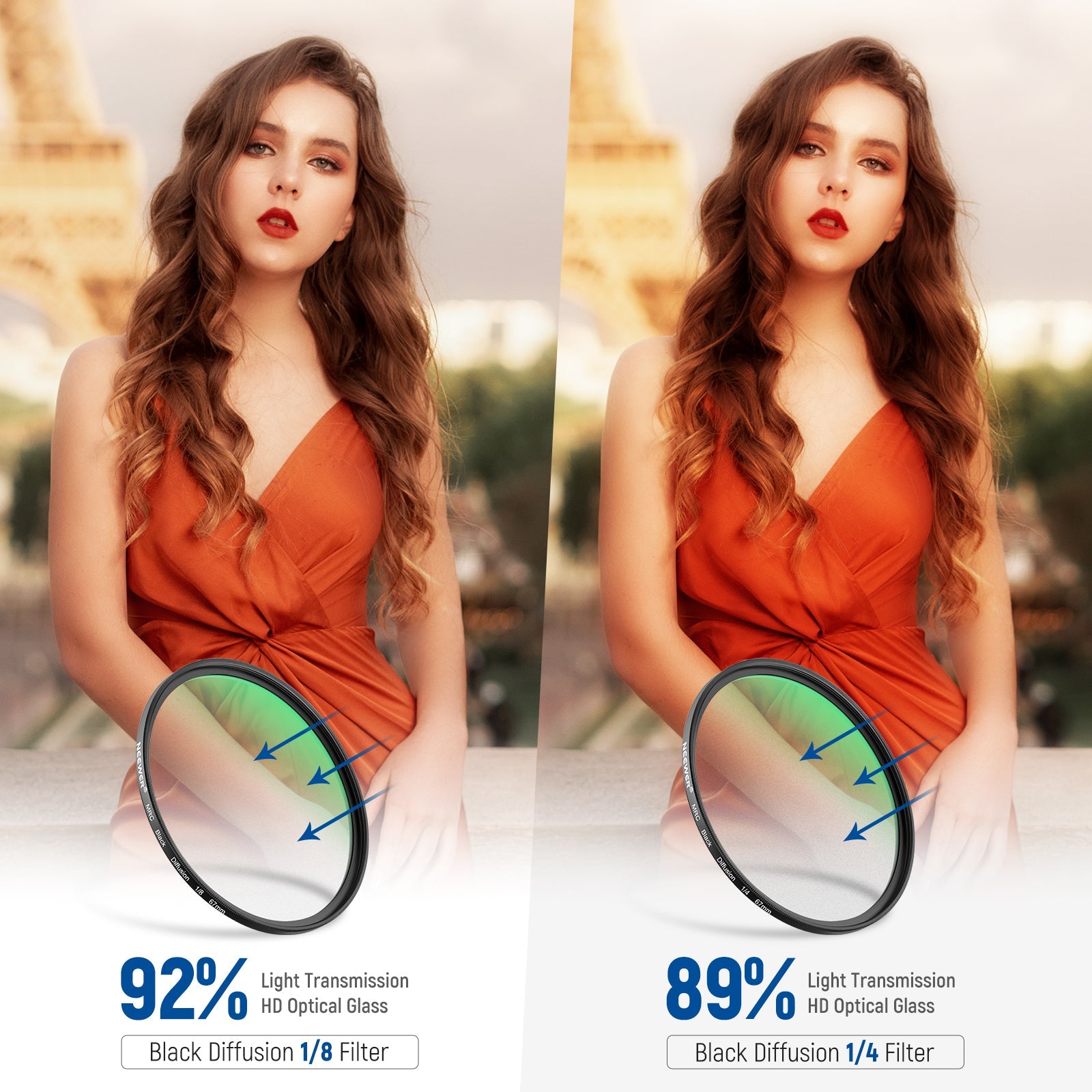 - 【Filtres d'objectif à effet cinématographique】 Les filtres d'objectif de caméra à diffusion noire NEEWER 49 mm créent des effets cinématographiques avec une densité de 1/4 et 1/8. Les filtres aident à réduire les reflets et à réduire les reflets, rendant la peau plus lisse et donnant au ton un aspect plus flou et plus doux. Avec les effets de film brumeux de rêve, ils sont idéaux pour la photographie de portrait, l'enregistrement vidéo et le vlog