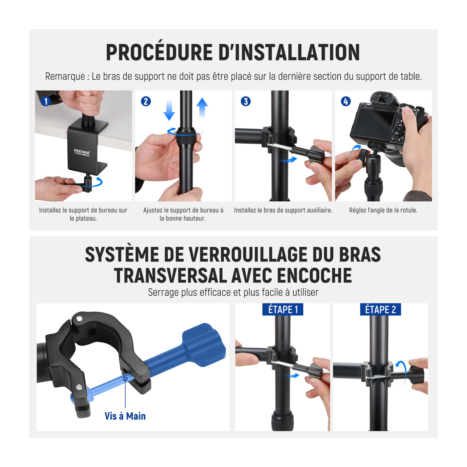 NEEWER TL253A+MH022 Support de montage pour caméra de table amélioré
