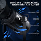 - Modes de ventilation : Mode Booster (ventilateur activé, pleine puissance) ; Mode Silencieux (ventilateur éteint)