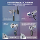 - 【Deux Modes d’Alimentation】Les ports DC 20V/3,25A et Type-C intégrés offrent des solutions d'alimentation accessibles pour une utilisation en intérieur et en extérieur. Alimentez par des batteries V-Mount, des plaques pour batteries de la série NP-F ou des chargeurs portables (tous vendus séparément). Pour des séances prolongées en intérieur, utilisez l'adaptateur secteur inclus ou un adaptateur PD (non inclus). La puissance d'entrée pour la charge rapide PD varie de 10W à 65W.