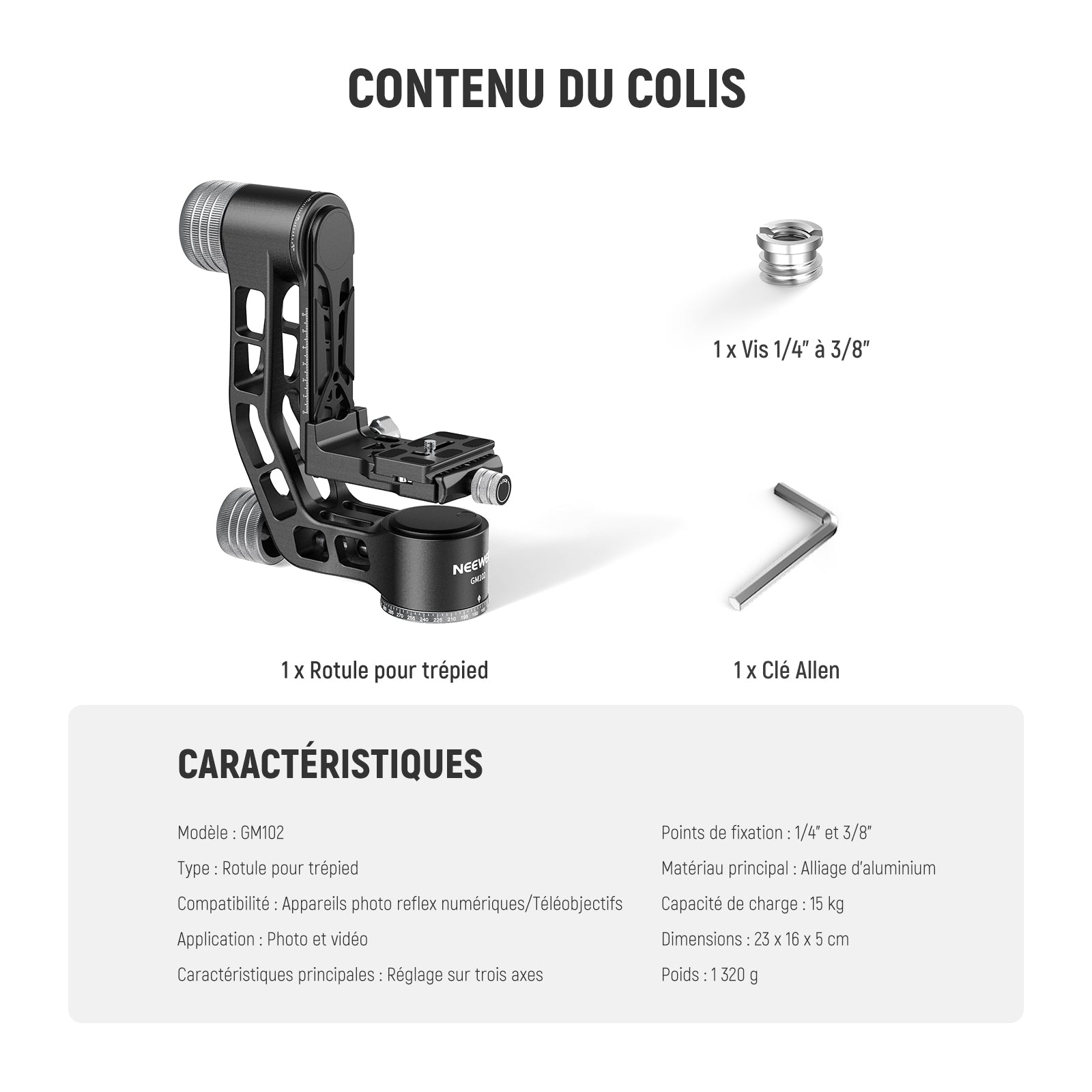 - 【Trou Fileté de 3/8"】 Intégrée à un trou fileté inférieur de 3/8", le gimbal head permet une fixation sur des trépieds, des monopodes ou des curseurs. Que vous capturiez des paysages grandioses, des sports rapides ou des prises de vue complexes de la faune, la tête gimbal fournit toujours une plateforme fiable pour vos chefs-d'œuvre créatifs