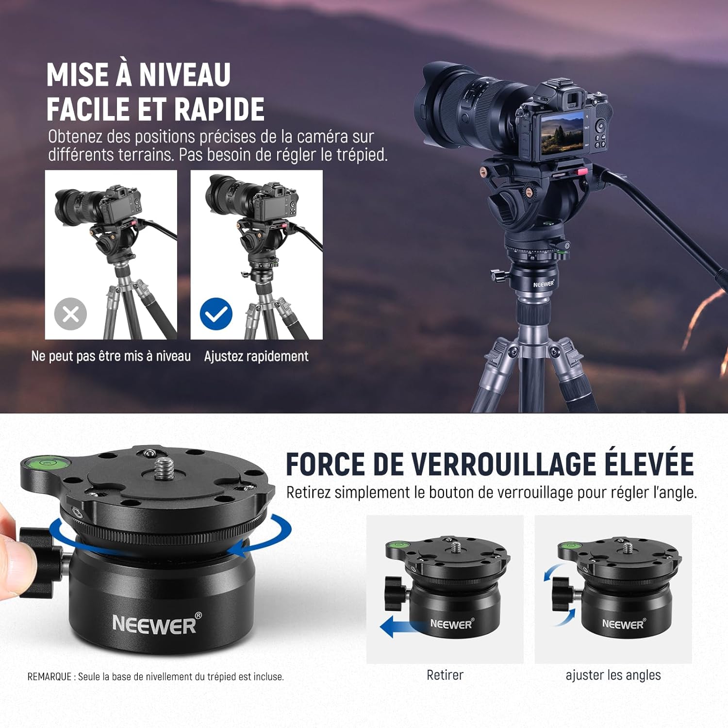 NEEWER GM15 Base de Mise à Niveau pour Trépied (ø60mm) Mise à Niveau de l'Appareil Photo