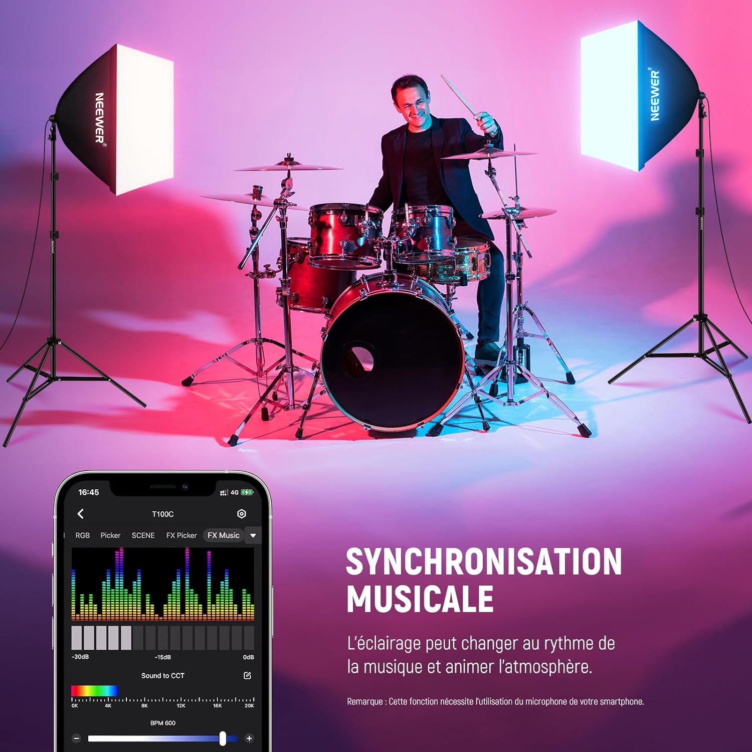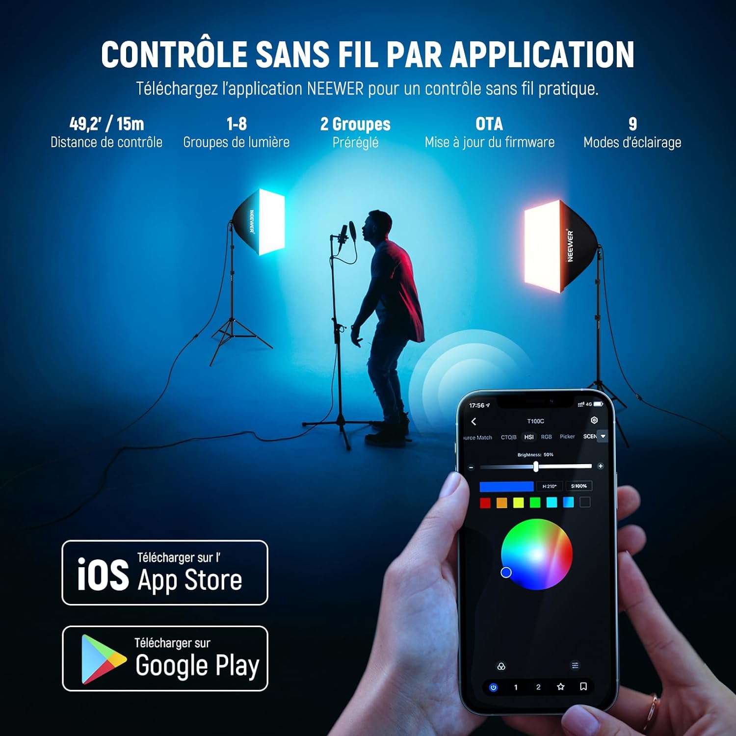 NEEWER NK800 Kit d'éclairage Softbox RVB avec contrôle par App