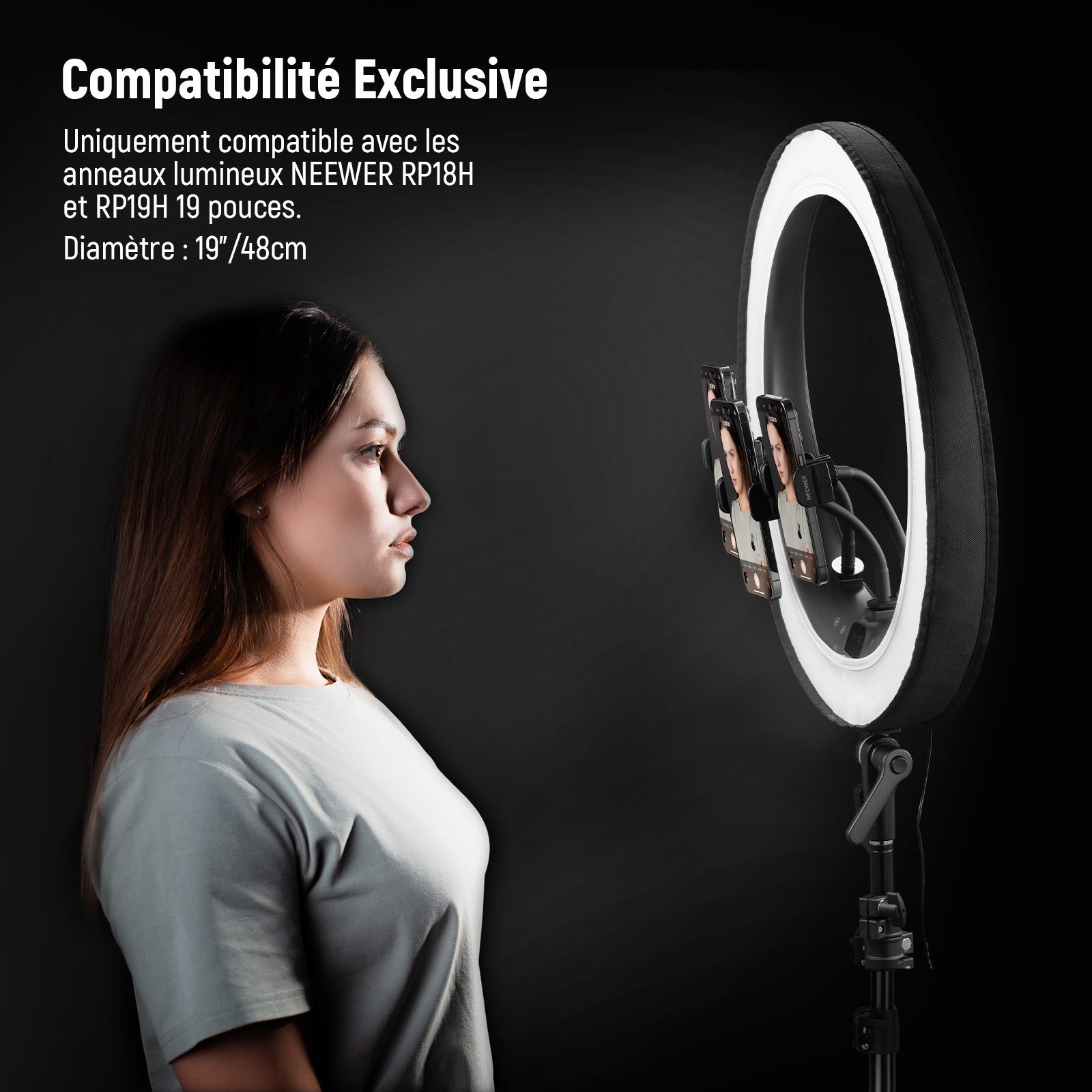 - 【Compatibilité Exclusive】uniquement compatible avec les anneaux lumineux NEEWER RP18H et RP19H de 19 pouces.