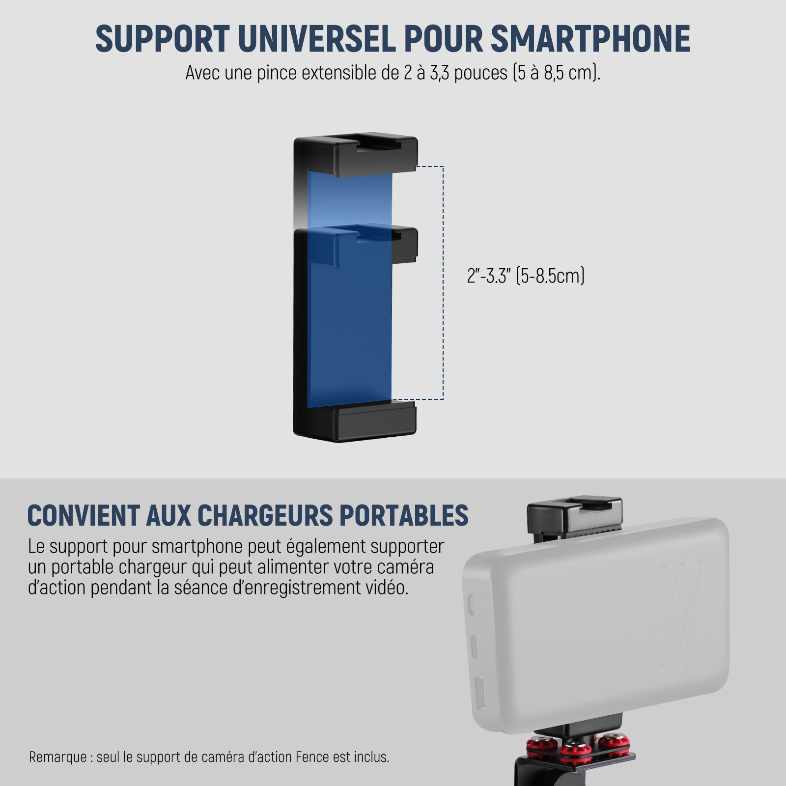- Support universel pour smartphone- Avec une pince extensible de 2 à 3,3 pouces (5 à 8,5cm), ce support de téléphone est compatible avec iPhone 16 15 Pro Max 15 Plus 14 Pro Max 14 Plus 13 12 Pro Max 13 Mini X Xs Max XR Samsung Galaxy S23 S22 Ultra Huawei P60 Mate 60 Pro Oppo Reno10 Pro Google Pixel 7 Pro et autres smartphones du marché. Il peut également être utilisé comme pince de chargeur portable ou support SSD externe, compatible avec Anker compatible avec Samsung T7 Crucial X8