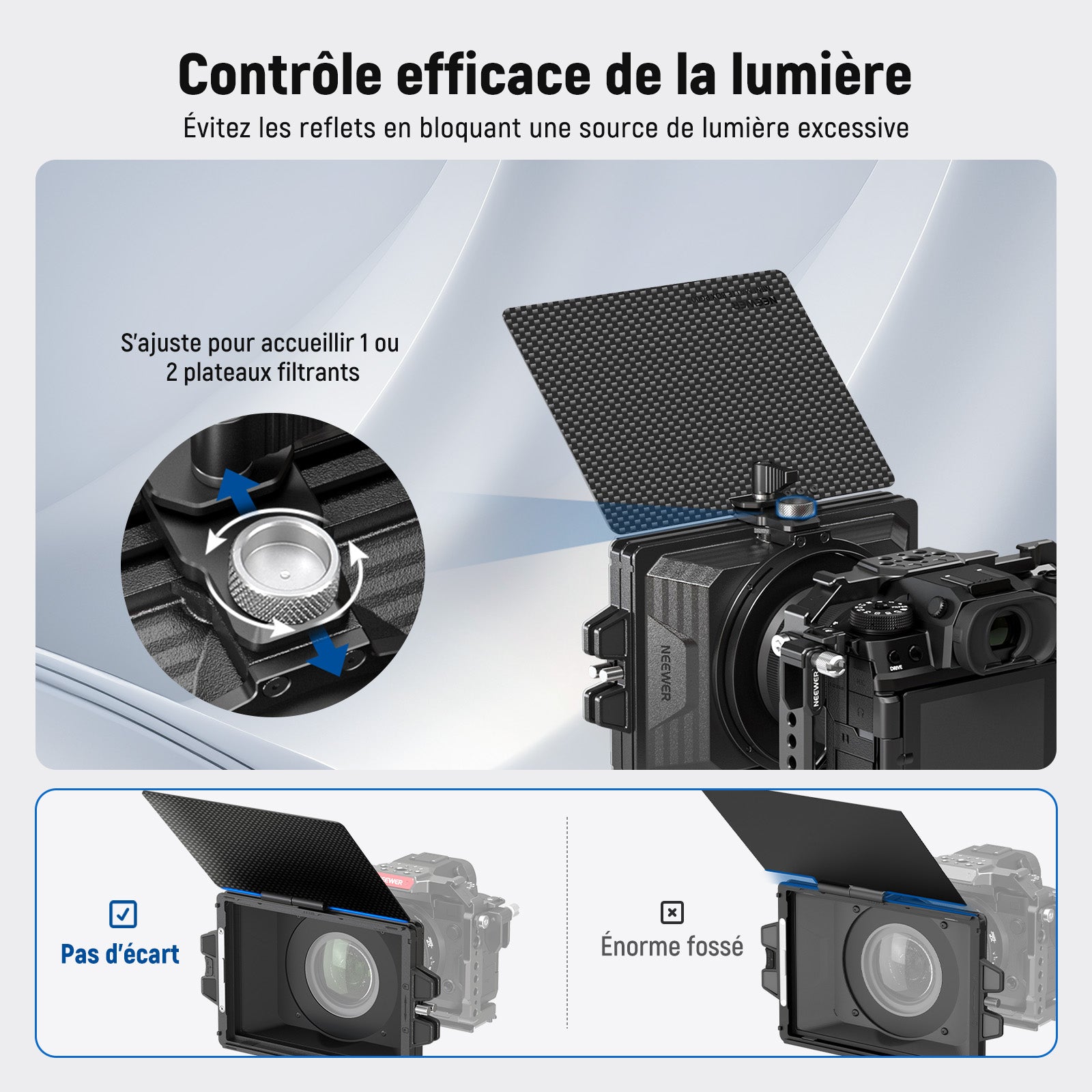 NEEWER PG002 Mini Matte Box avec Deux Plateaux pour Filtre 4"x5,65"