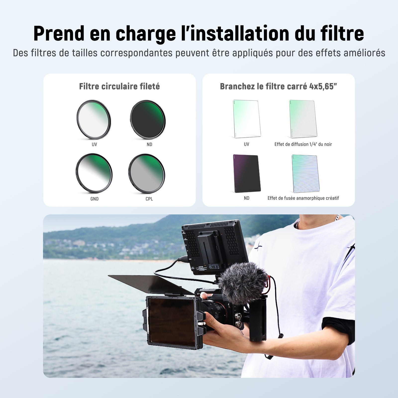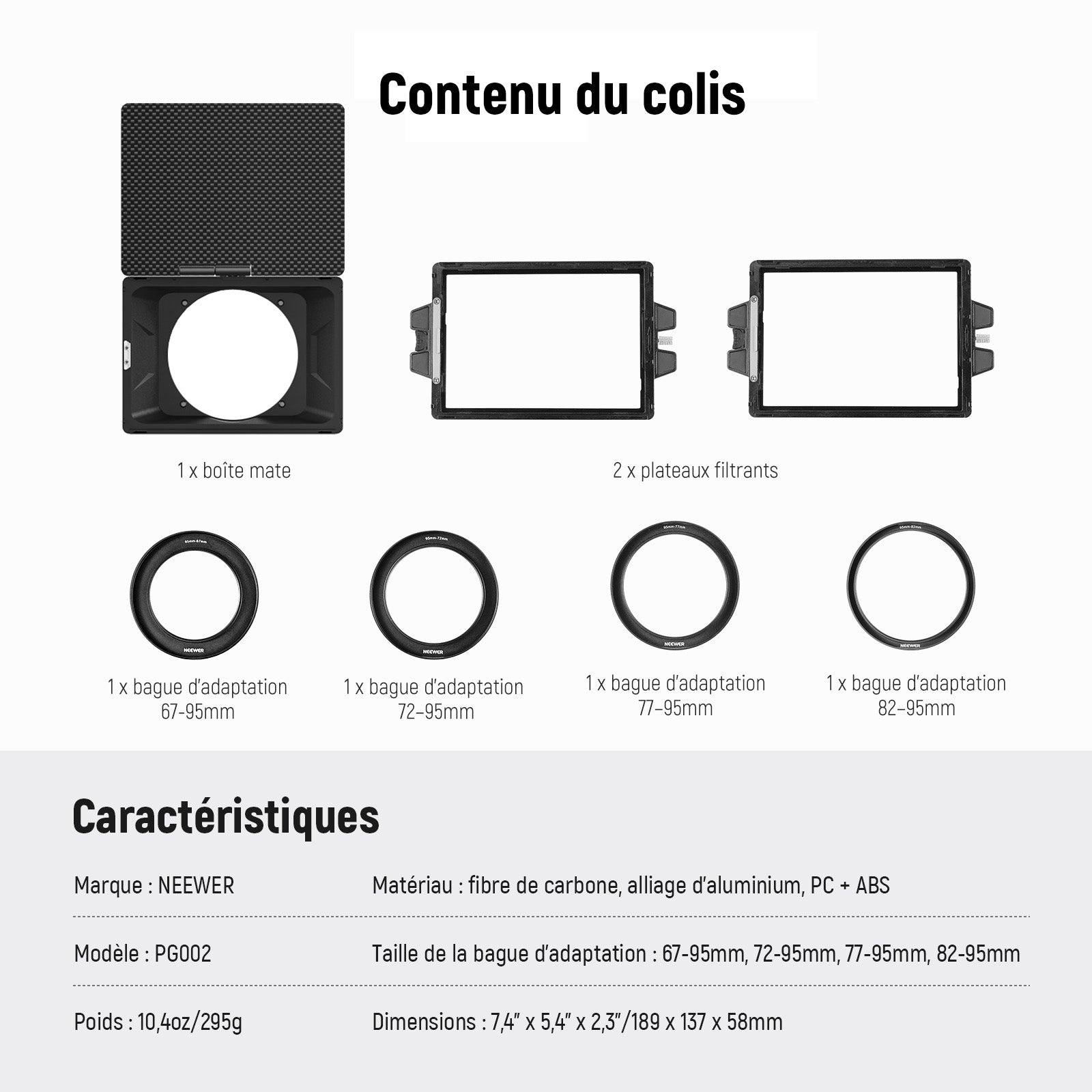 - Caractéristiques principales : Filtre empilable / adaptateur d'objectif