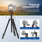 - 【Pieds réversibles et utilisation portable】 Pesant seulement 1,6kg, ce trépied portable est doté de pieds réversibles qui se replient vers le haut à 180° et se replient à un diamètre compact de 11,5cm pour un rangement et un transport faciles, idéal pour le vlogging de voyage, les selfies, la photographie, les vidéos YouTube et la diffusion en direct à l'intérieur et à l'extérieur