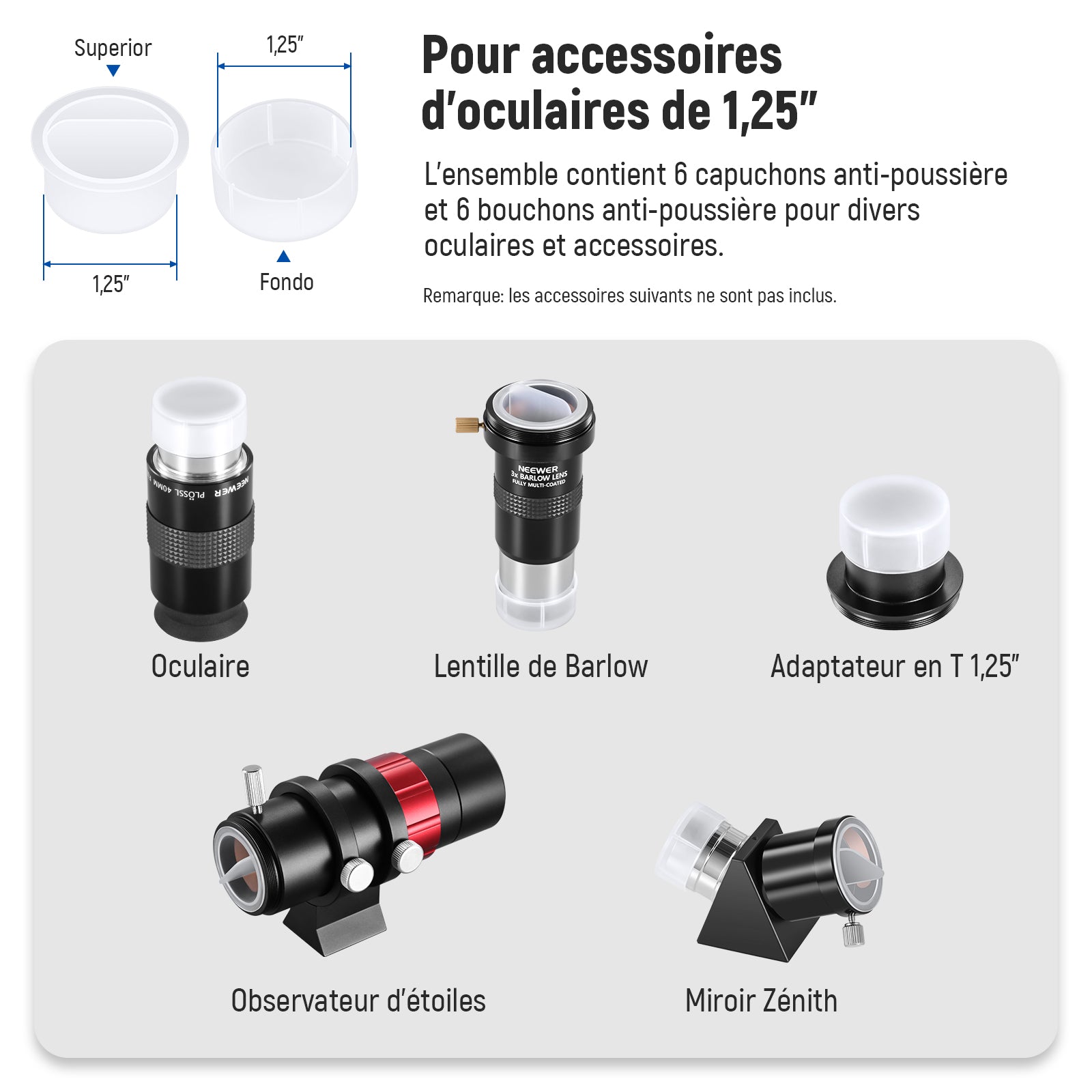 - 【Protégez Plusieurs Appareils】Cet ensemble de 6 paires peut bien protéger vos accessoires astronomiques de la poussière et des rayures et vous permet d'avoir toujours des remplacements à portée de main. Chaque paire contient 1 capuchon et 1 bouchon